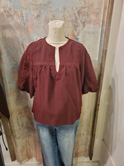 Washed Poly Silk Boat Neck Top_