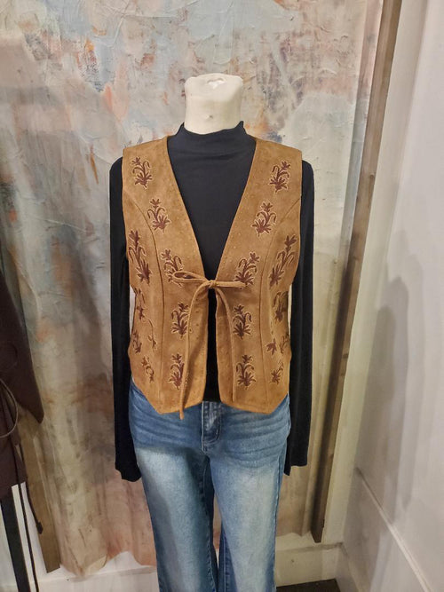Embroidered Beaded Suede Vest