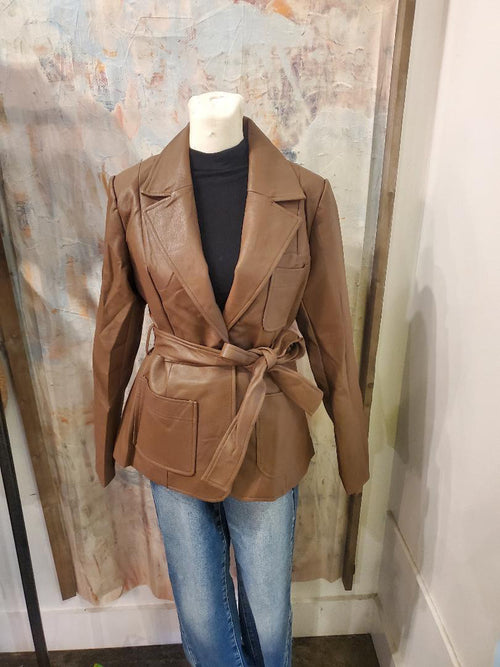 Faux Leather Tie Waist Jacket