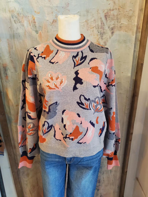 Knit Floral Pattern Sweater Top