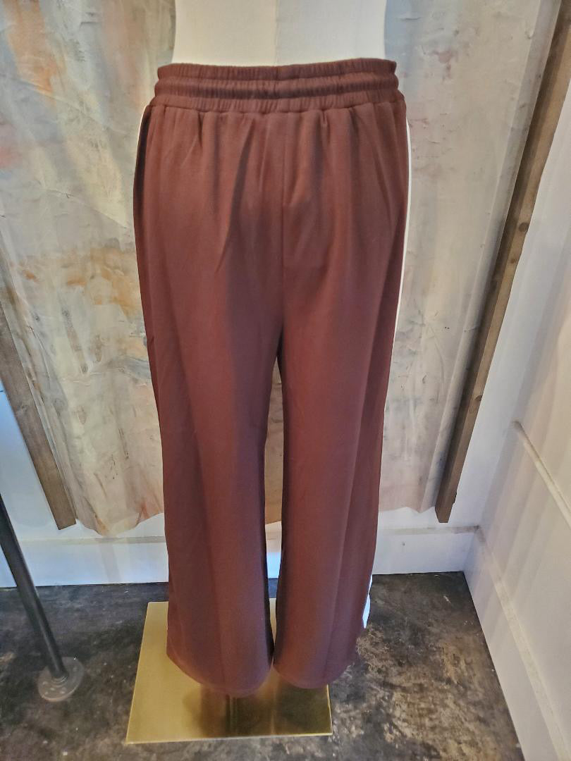 These brown striped pants feature a unique leg detail and convenient pockets. The tailored fit and stylish design make them a versatile addition to any wardrobe. Made with high-quality fabrics, these pants provide comfort and durability. Upgrade your style and functionality with these trendy pants.