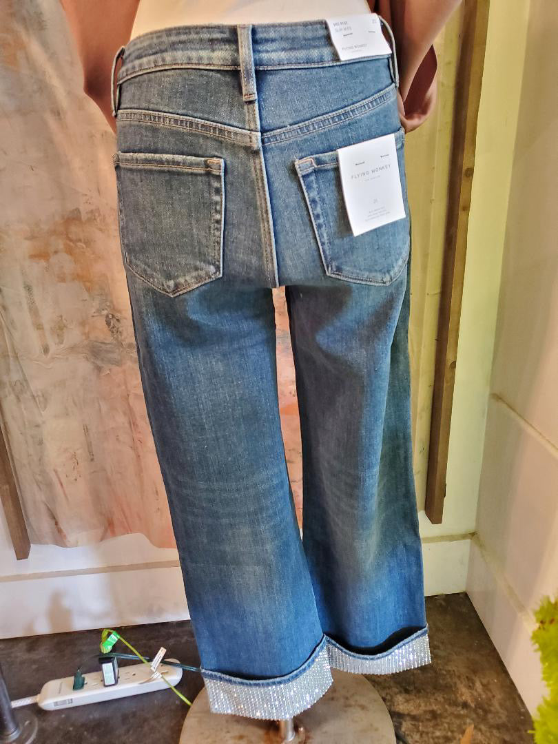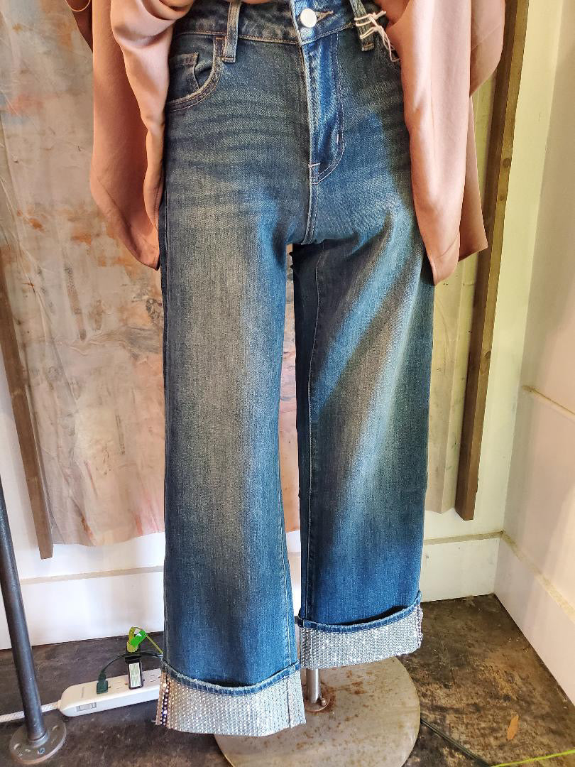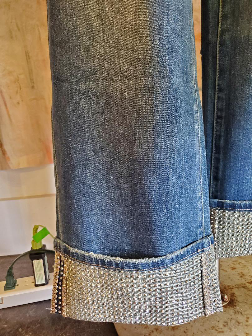 Upgrade your denim game with our Studded Cuff Detail Mid Rise Denim. Featuring a unique studded cuff design and mid-rise fit, these jeans are the perfect combination of edgy and classic. The detailed craftsmanship and comfortable fit make these the perfect addition to your wardrobe.