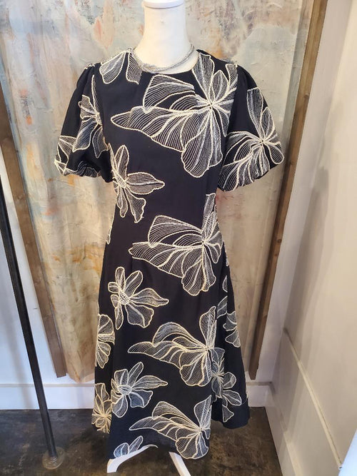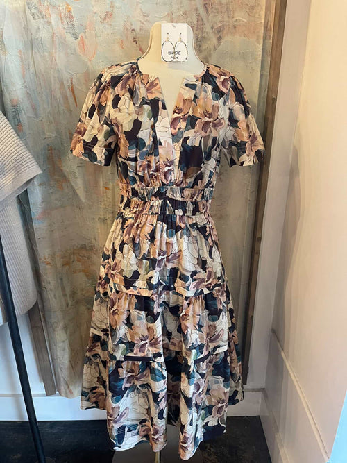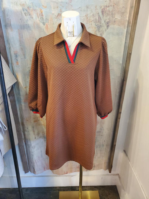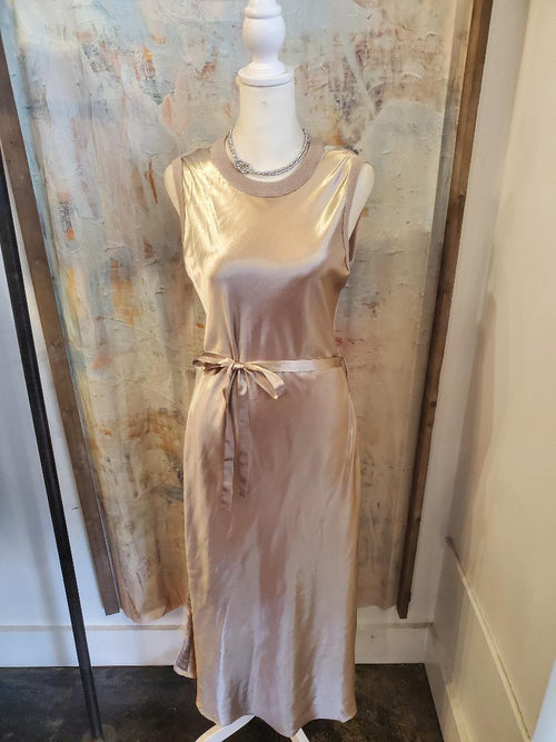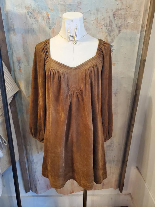 Long Sleeve Shoulder Smocked Detail Long Dress with Tie___