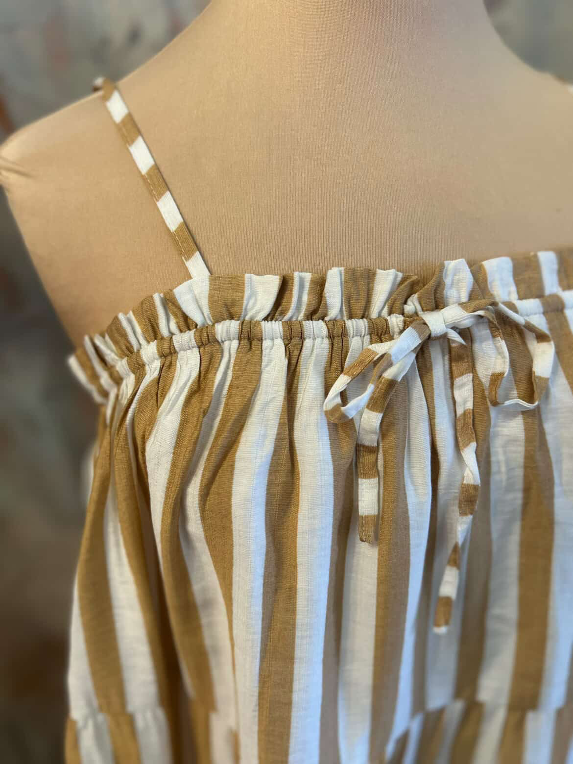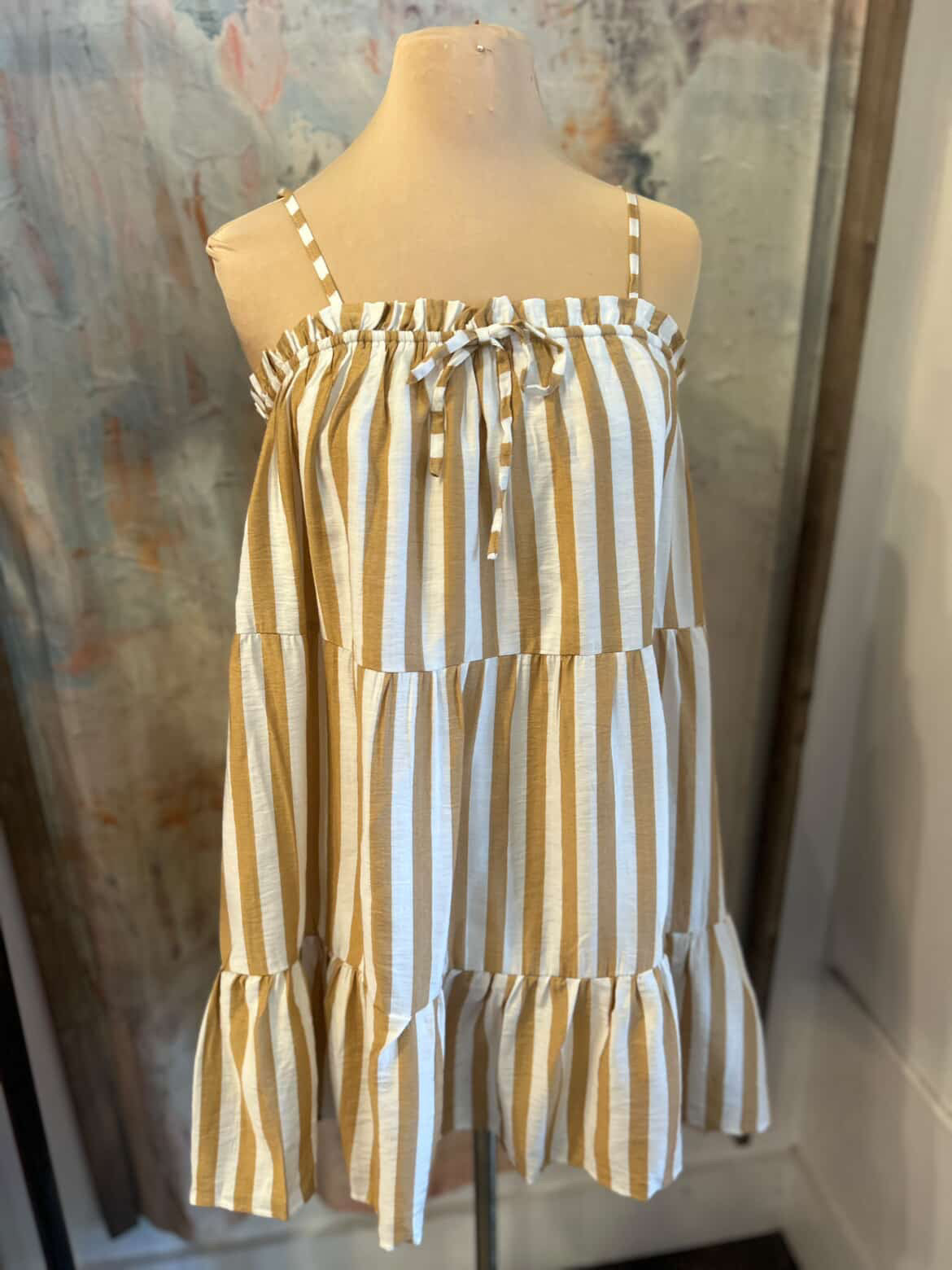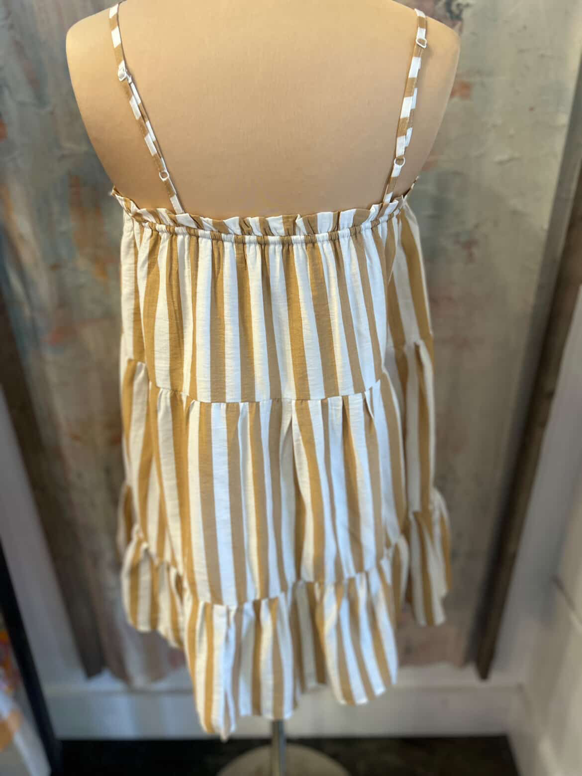 The Adjustable Stripe Dress features a versatile design that allows for customization in fit. This adaptability enhances comfort, accommodating various body shapes and sizes. Its striped pattern offers a classic aesthetic, suitable for both casual and formal occasions, promoting ease of transition between settings.