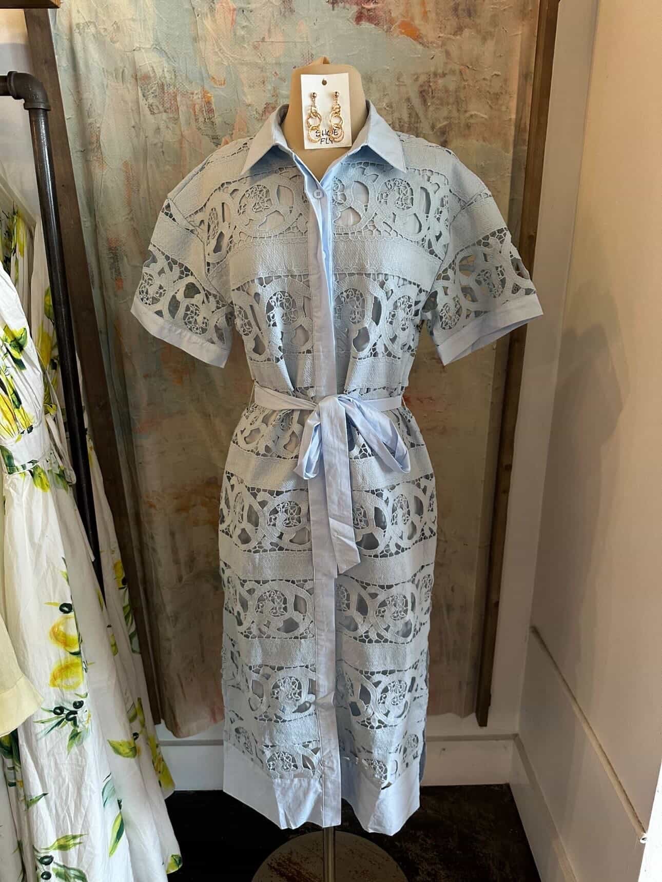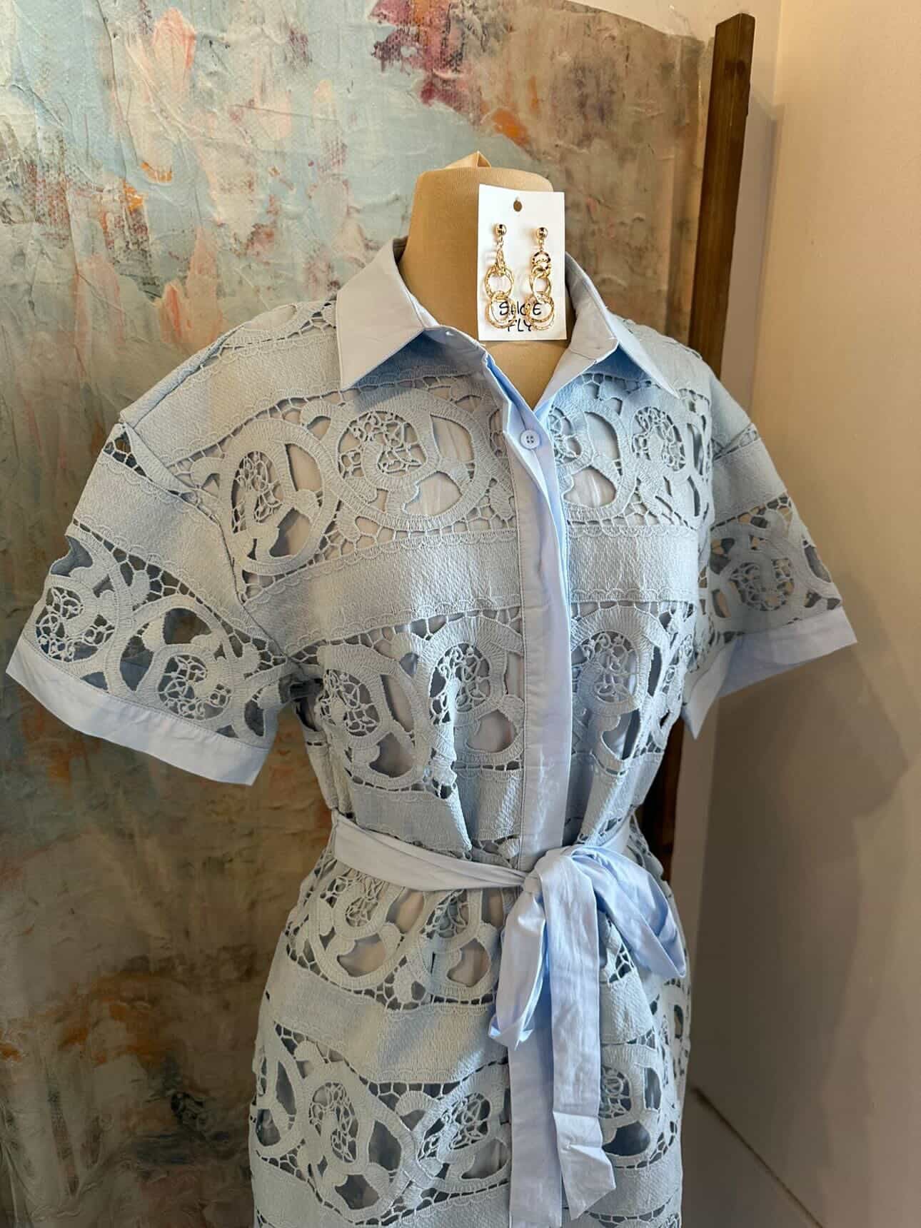 The Eyelet Overlay Midi Shirt Dress combines a classic midi length with an intricate eyelet design, enhancing breathability and aesthetic appeal. This garment offers a versatile style suitable for both casual and semi-formal occasions, while its durable fabric ensures longevity. Ideal for those seeking elegance without compromising comfort.