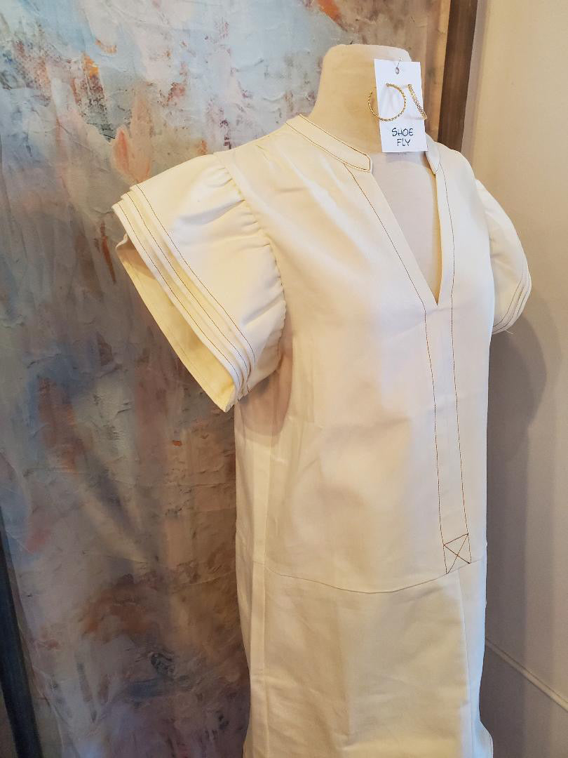 The Flutter Sleeve V Neck Dress features a sophisticated design that combines elegance with comfort. The flutter sleeves enhance breathability, while the V-neckline offers a flattering silhouette. This dress is suitable for various occasions, providing a versatile addition to any wardrobe.