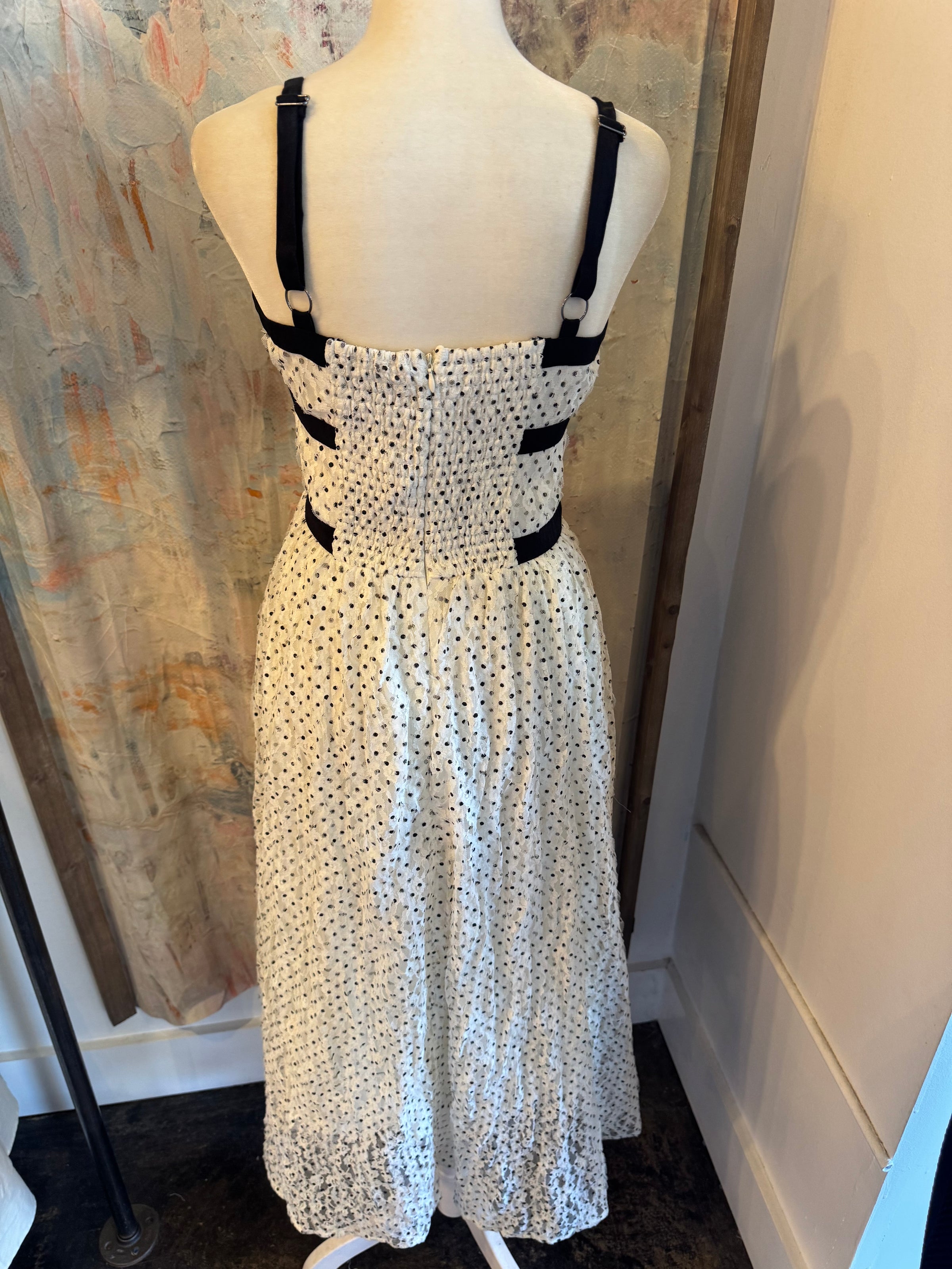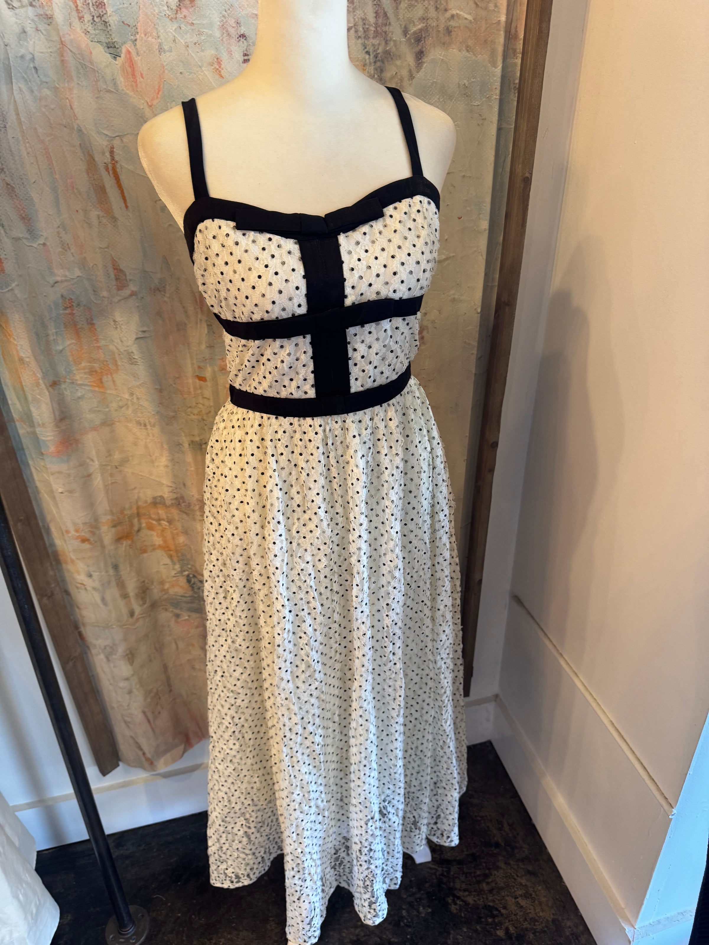 Polka Dot Textured Bow Detail Dress