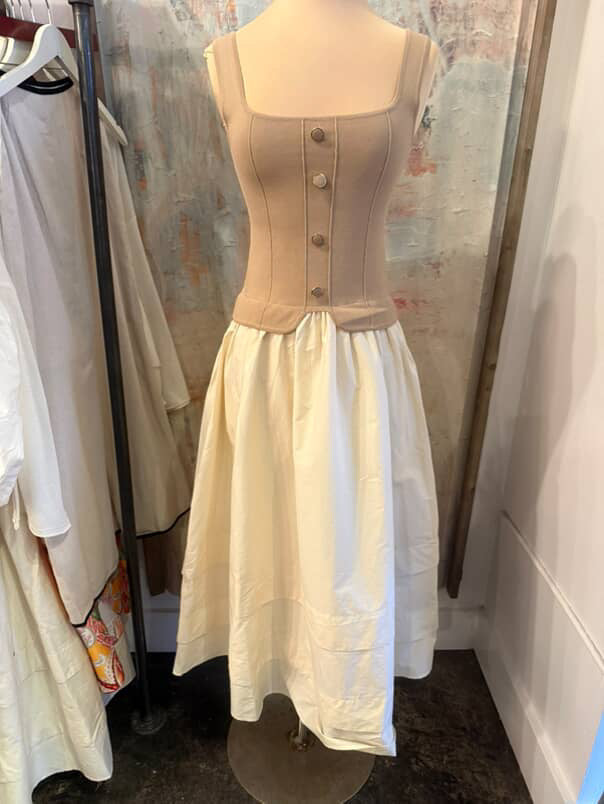 The Square Neck Button Mixed Media Dress combines contemporary design with versatility. Its square neckline offers a structured silhouette, while the mixed media fabric enhances comfort and breathability. This dress is suitable for various occasions, providing a balanced blend of style and practicality.