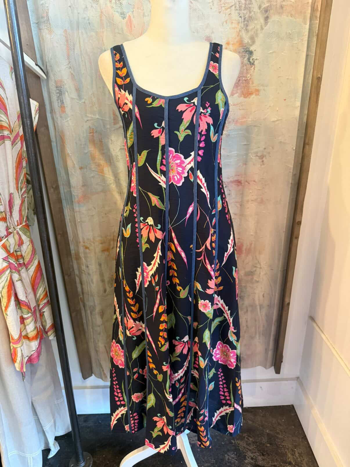 The Thin Strap Navy Floral Pattern Dress combines a sophisticated design with a versatile style suitable for various occasions. The floral pattern adds a touch of elegance, while the thin straps provide comfort and breathability. This dress is ideal for summer outings, offering an effortless blend of fashion and function.