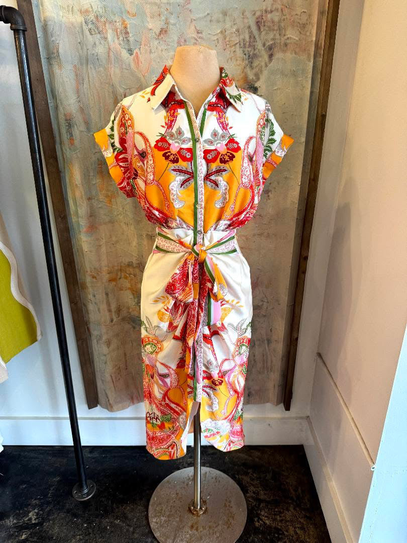 Botanic Scarf Print Tie Waist Dress