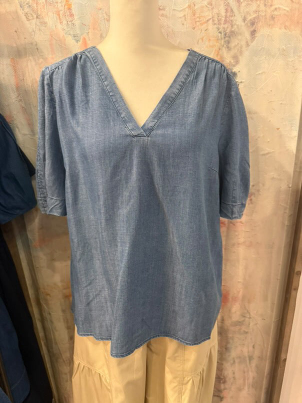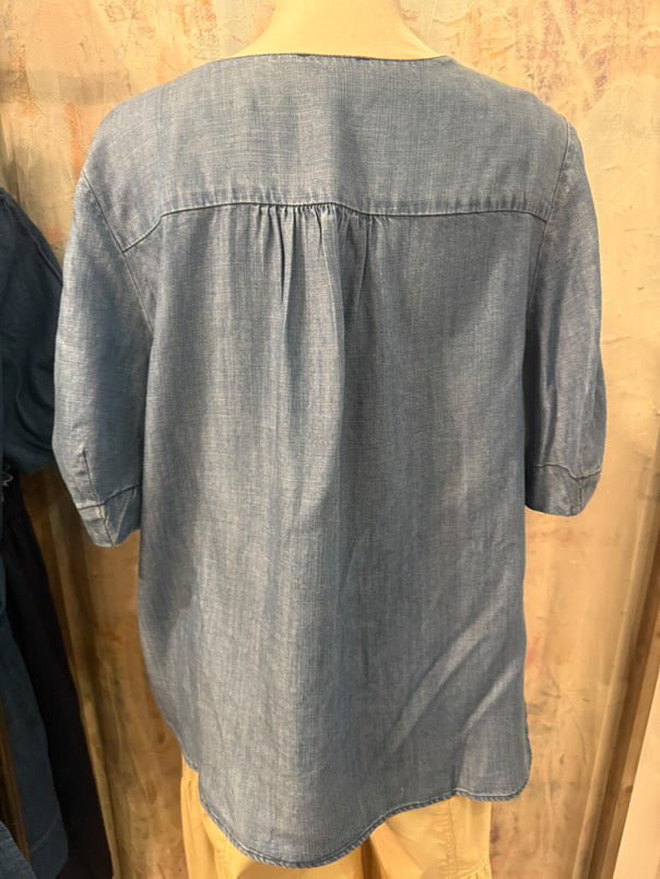 The Chambray Short Sleeve Blouse combines comfort and versatility, crafted from lightweight chambray fabric. This blouse is ideal for warm climates, offering breathability and a relaxed fit. Its short sleeves enhance ease of movement, making it suitable for both casual and semi-formal settings.