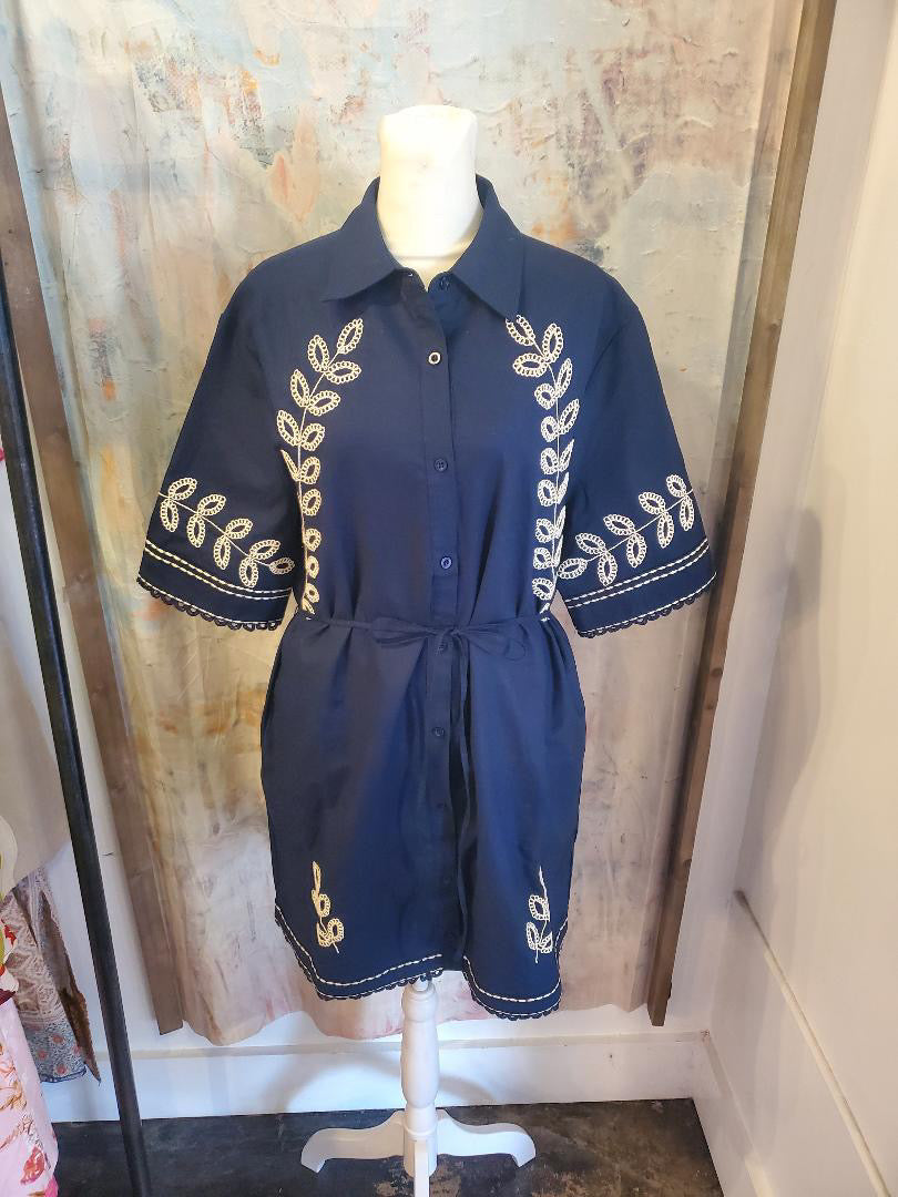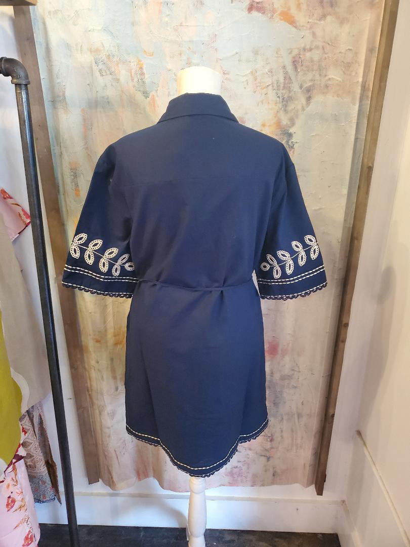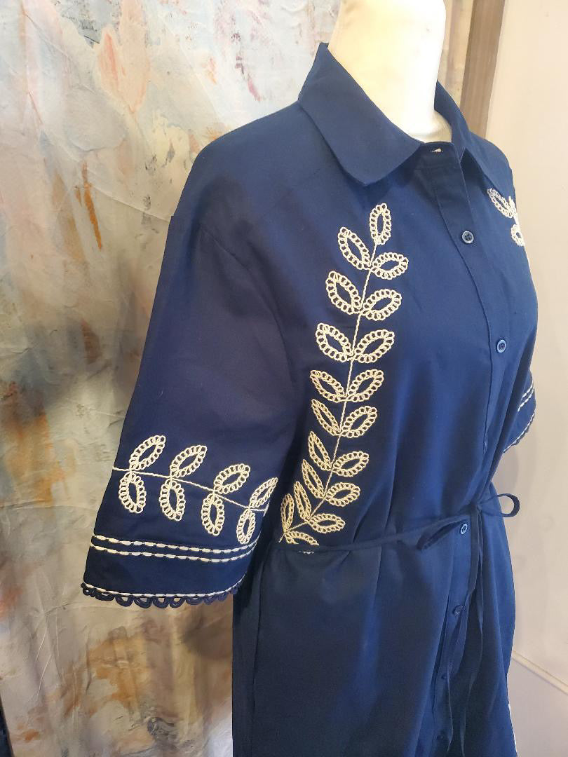 The Embroidery Top Stitch Linen Shirt Dress features a breathable linen fabric, enhancing comfort in warm weather. The addition of pockets provides practical storage, while the embroidered top stitch detail adds subtle sophistication. This dress balances style and functionality, making it suitable for both casual and semi-formal settings.