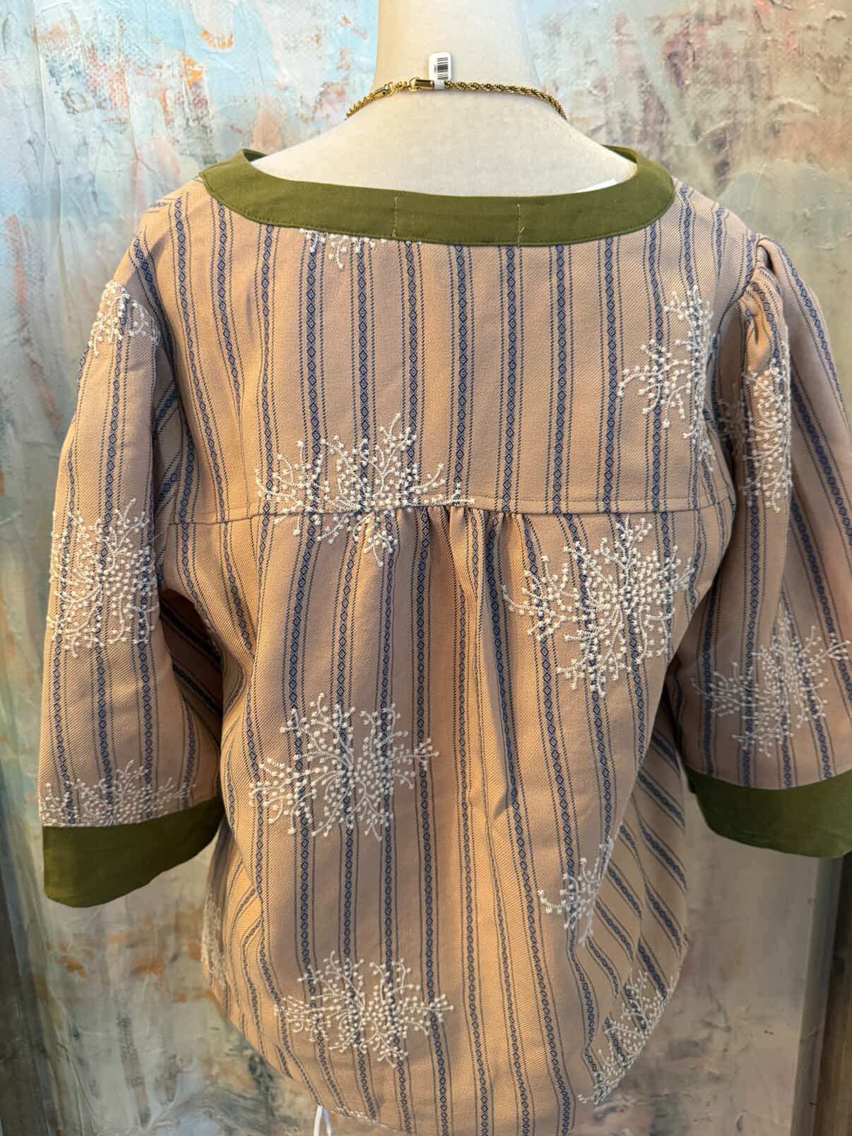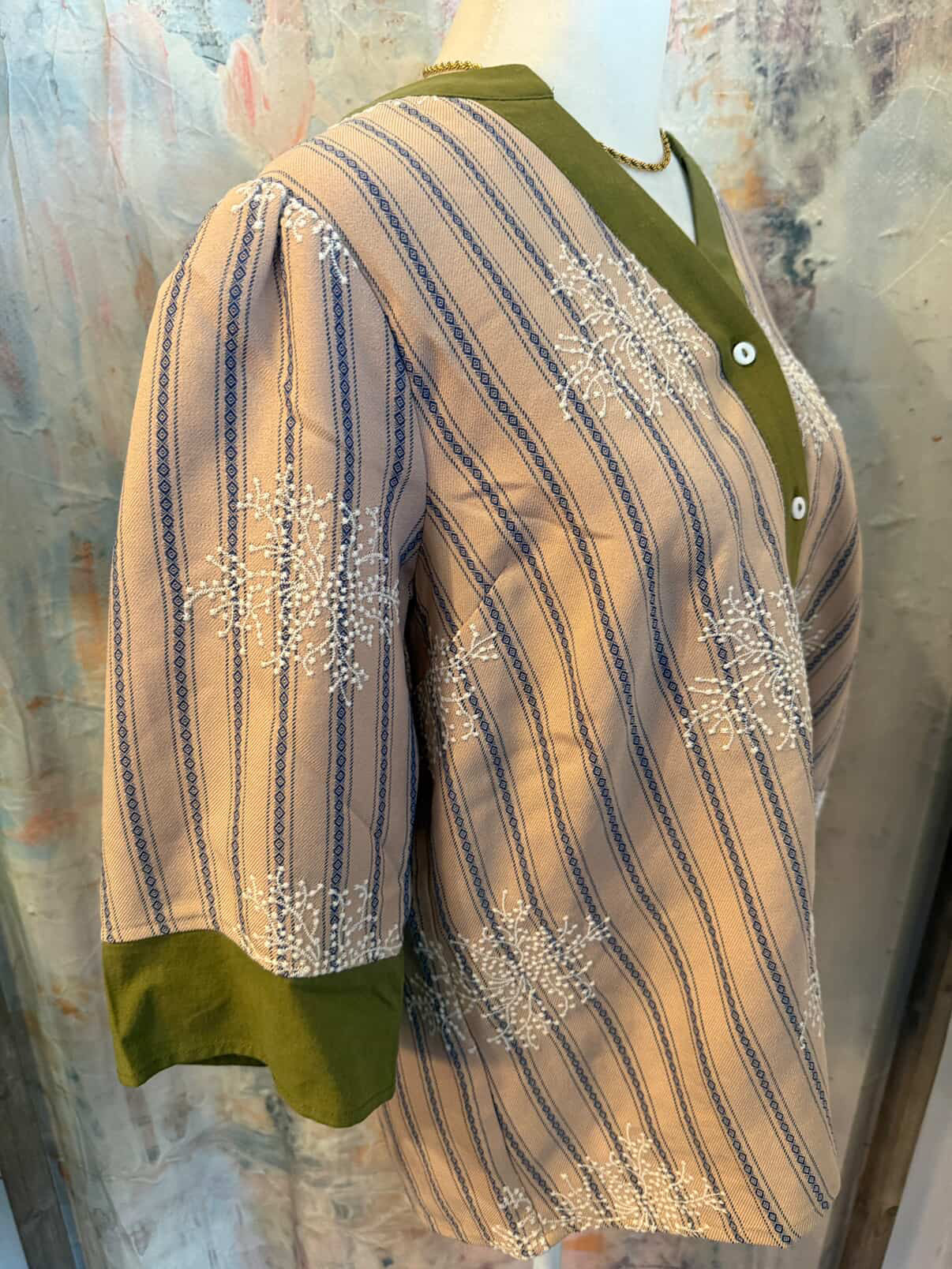 Floral Embroidered Stripe Placket Top