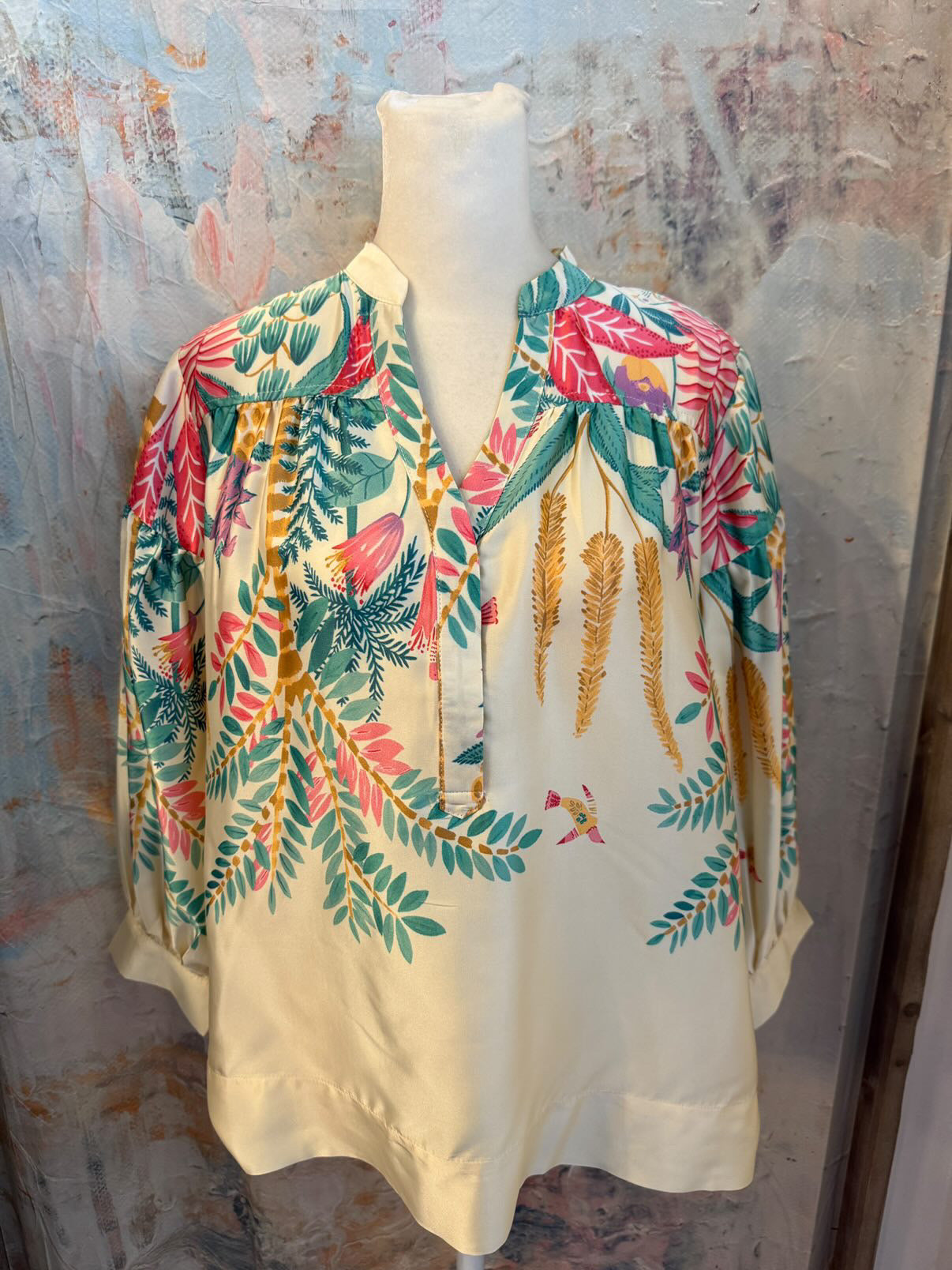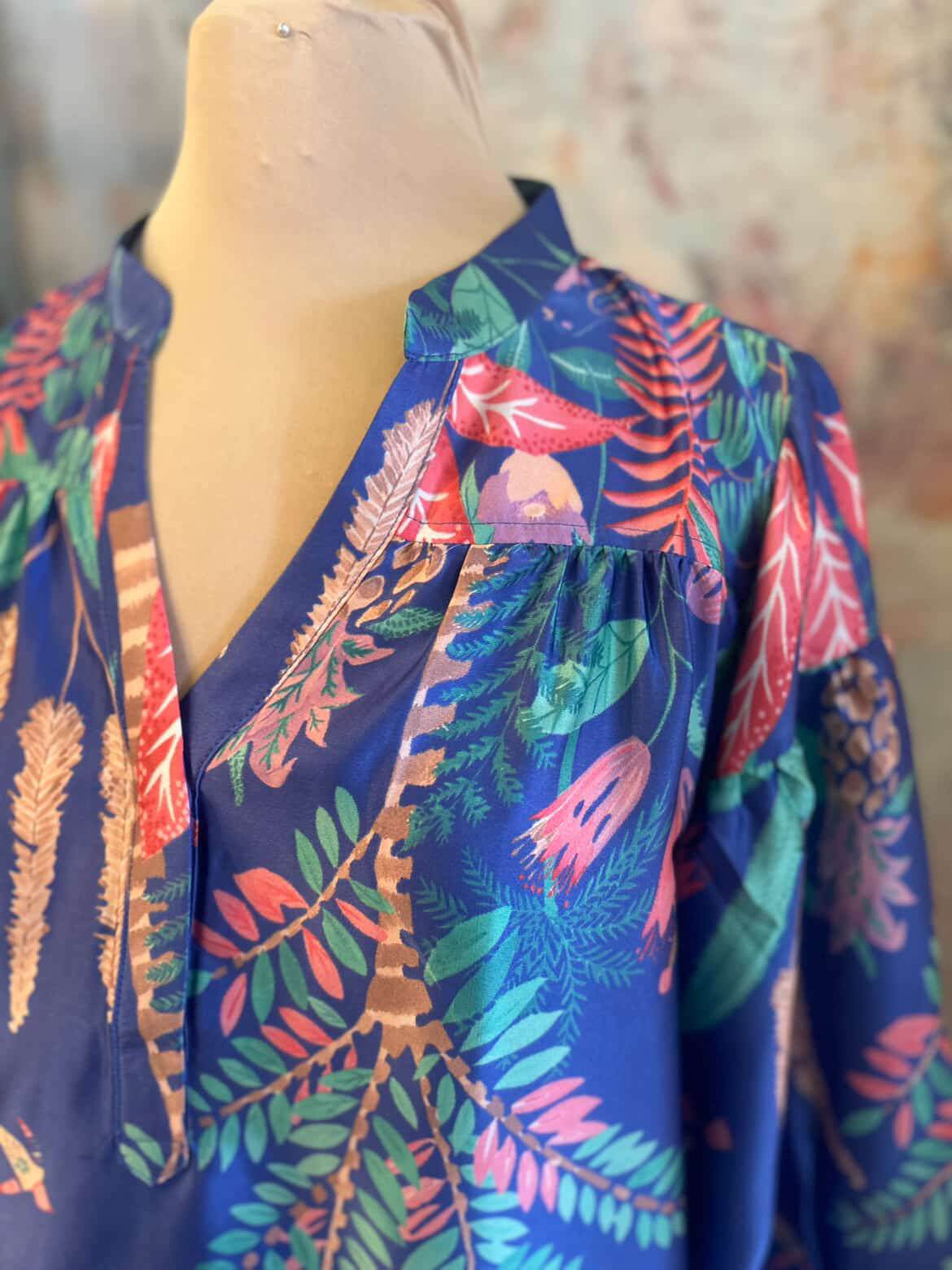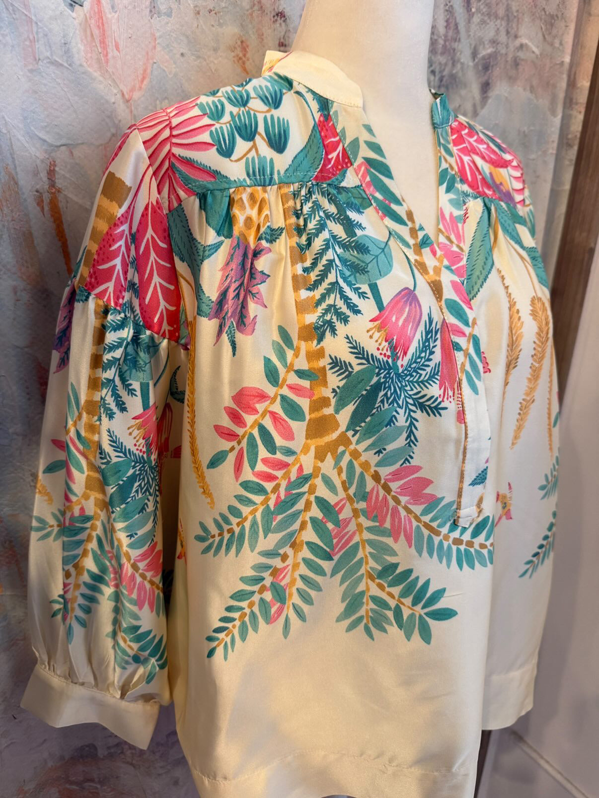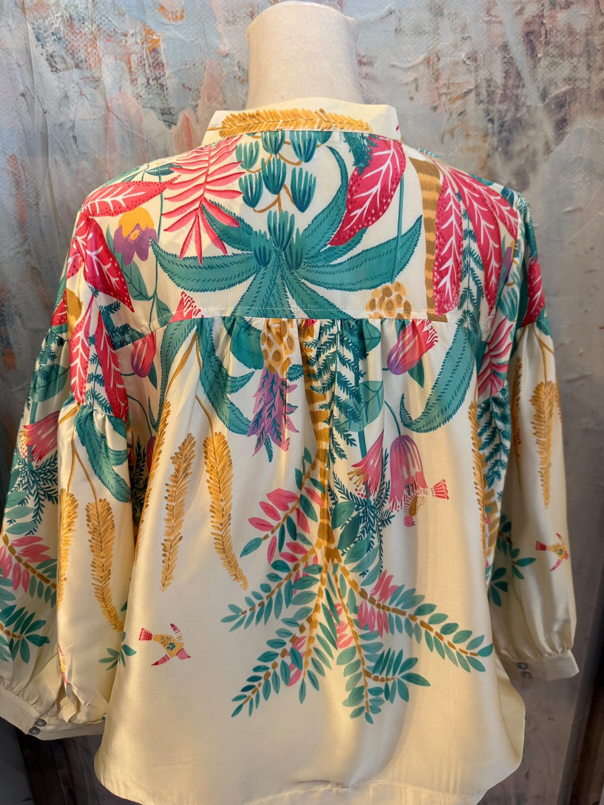 Flower and leaf print top The Flower and Leaf Print Satin Top features a distinctive floral and foliage design, crafted for aesthetic appeal. The satin fabric contributes to a smooth texture, enhancing comfort. This top is suitable for various occasions, providing versatility in styling. Its print pattern integrates nature-inspired elements, appealing to those who appreciate botanical aesthetics.