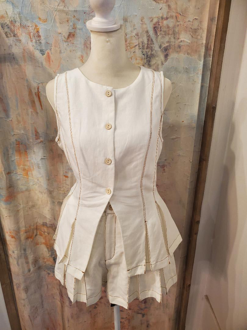 The Linen Contrast Stitch Top is crafted from high-quality linen, providing breathability and comfort. The contrast stitching adds a distinctive aesthetic while enhancing durability. Ideal for warm weather, linen's natural moisture-wicking properties help maintain a comfortable body temperature. This top is a versatile addition to any wardrobe.