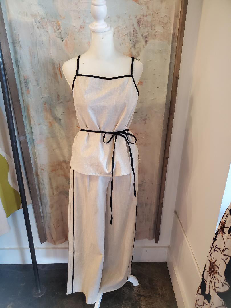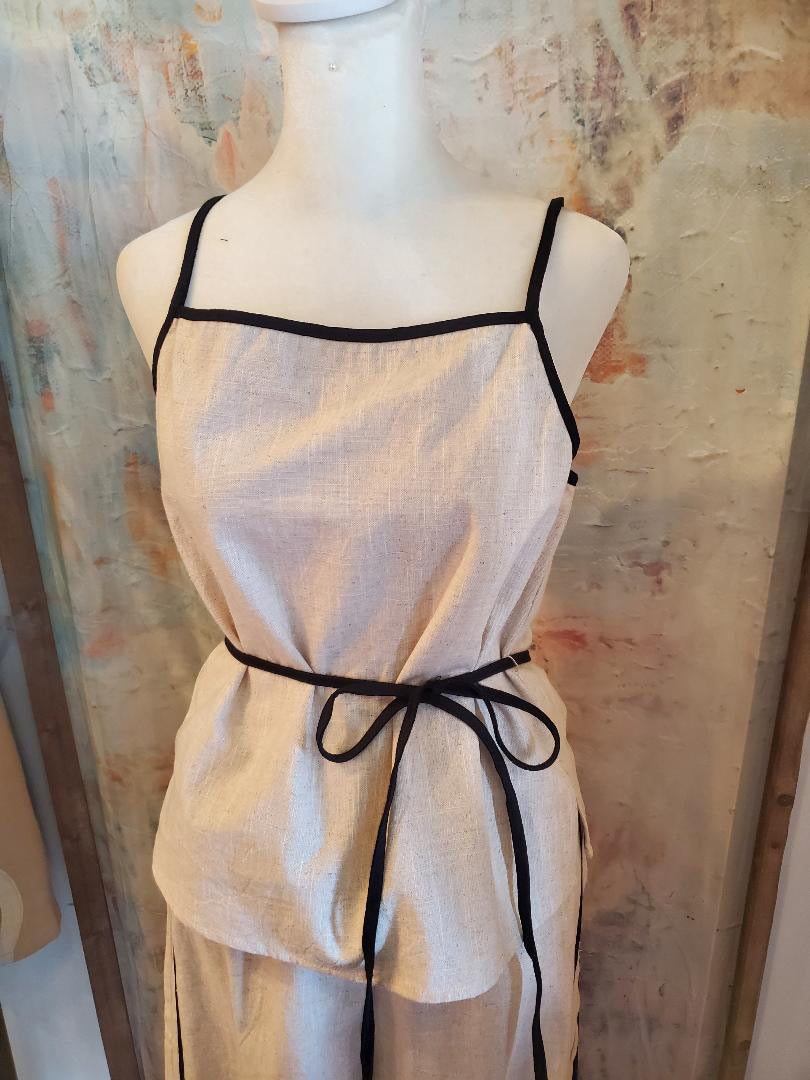 This Linen Top with Contrast Piping offers a breathable fabric composition, ideal for temperature regulation. The contrast piping enhances the aesthetic appeal, providing a refined touch. Linen's natural moisture-wicking properties contribute to comfort, making it suitable for warm climates. This garment combines practicality with style effectively.