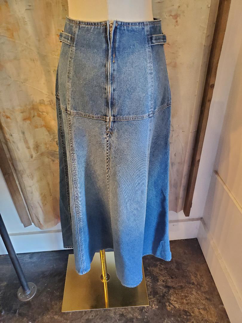 Long Denim Side Buckle Detail Skirt