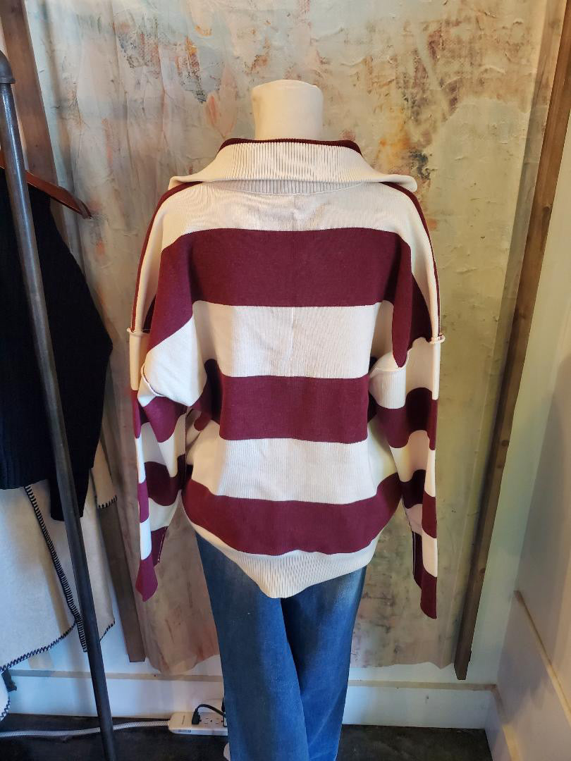 Introducing our Rugby Stripe Zip Detail Top, designed for the ultimate sporty chic look. The zip detail adds a modern touch to this classic rugby stripe design. Made with high-quality material for maximum comfort and durability. Perfect for a casual day out or a fun game of rugby.