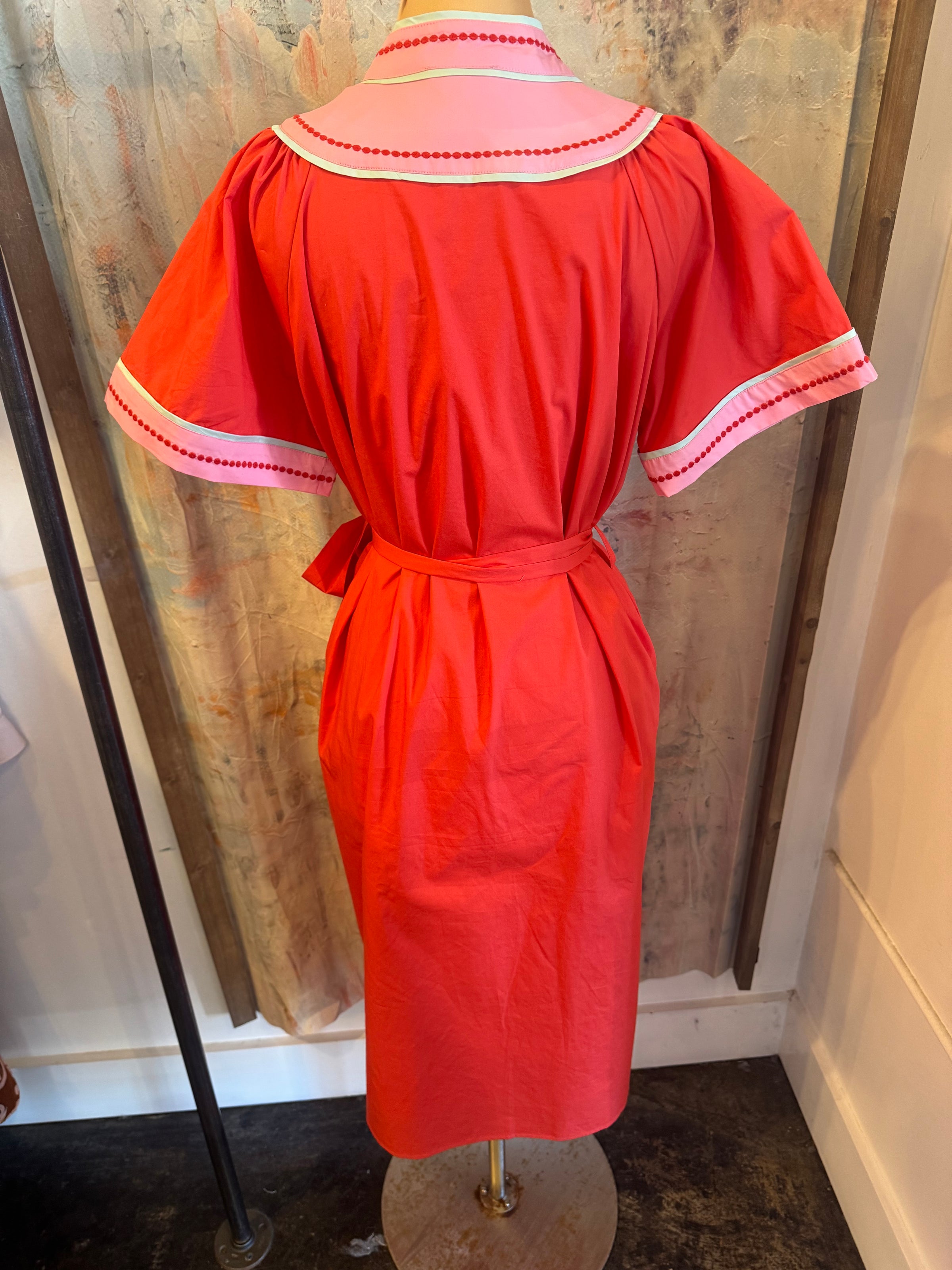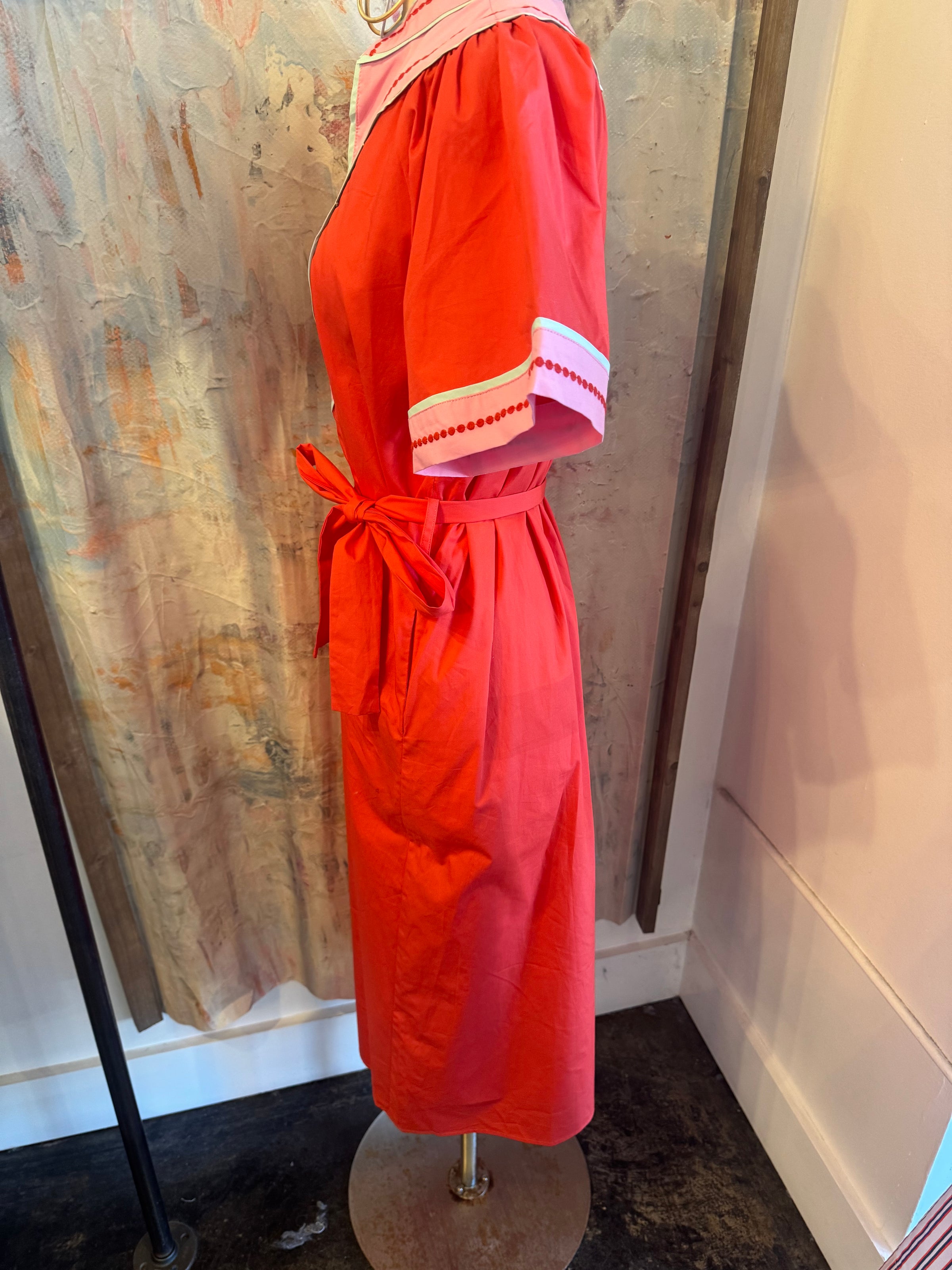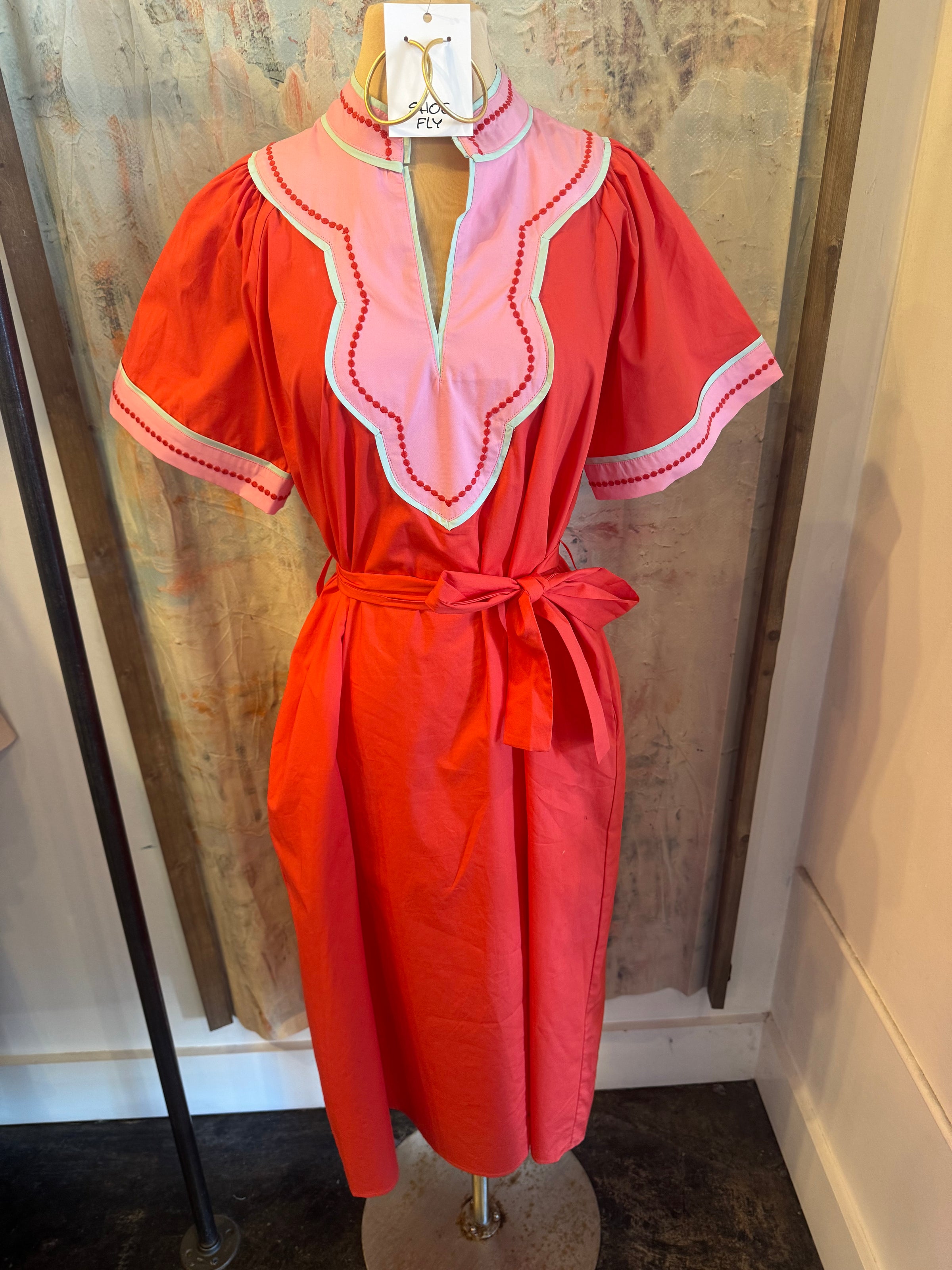 Short Sleeve Midi Dress with Embroidery Detail