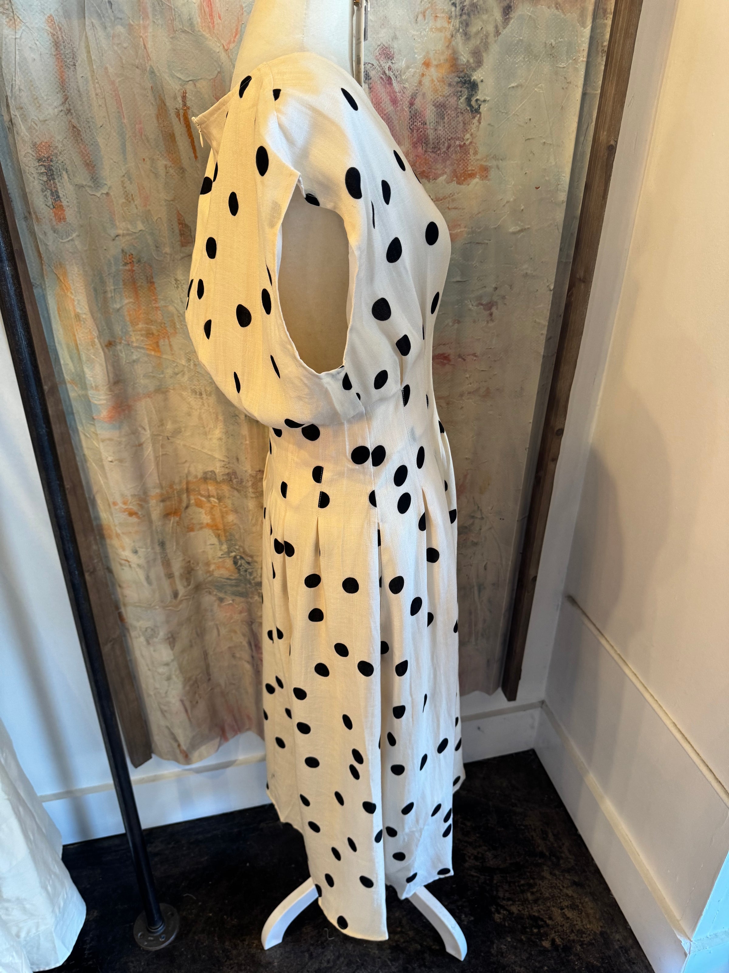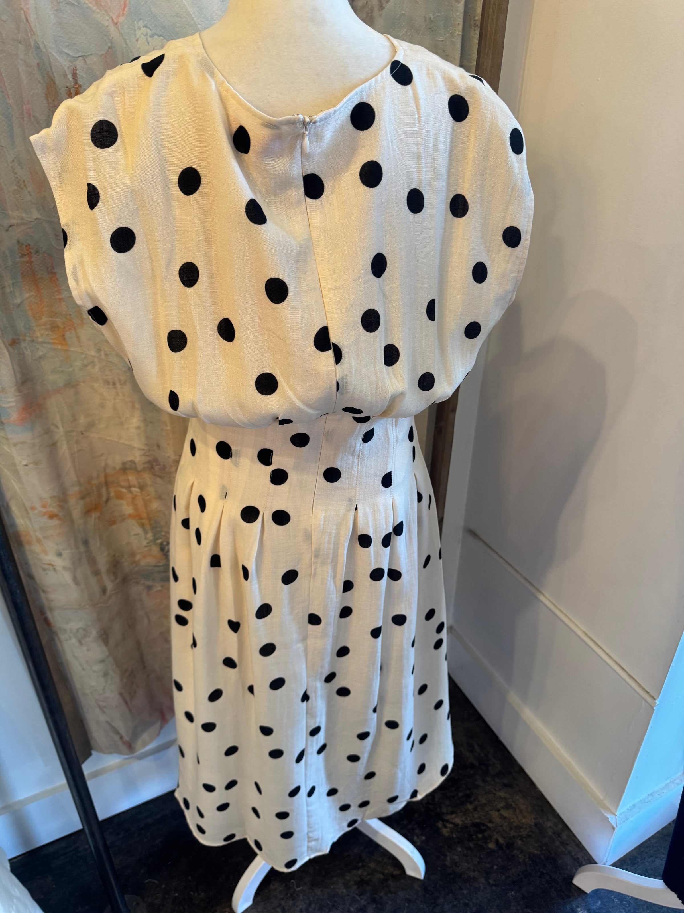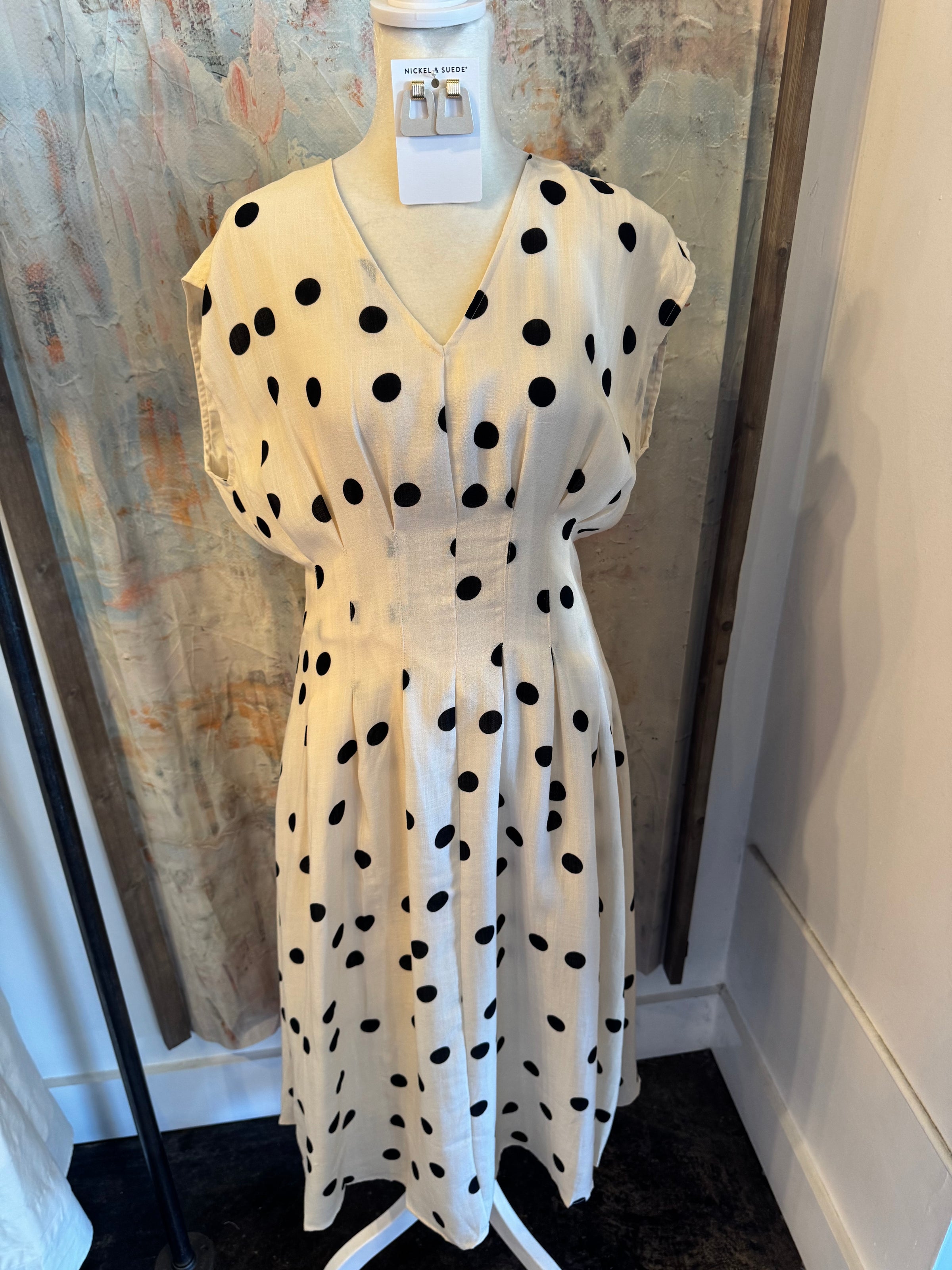 Short Sleeve Polka Dot V Neck Dress with Pockets