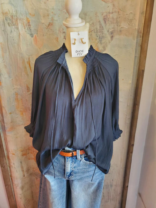 Split Neck 3/4 Sleeve Dress with Elastic Cuffs