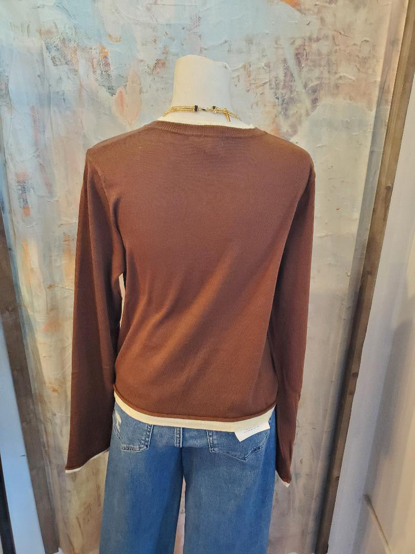 As a product expert, I present to you our Long Sleeve Layer Knit Top. Made with high-quality knit fabric, this top offers a comfortable and stylish layering option for any occasion. Its long sleeves provide warmth and versatility while the material's stretchability ensures a perfect fit. A must-have staple for any wardrobe.