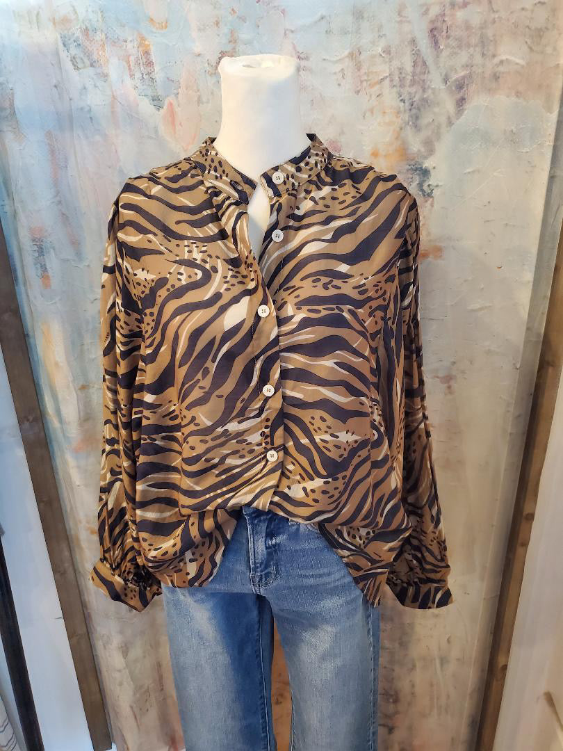 Print Multi Button Up Blouse