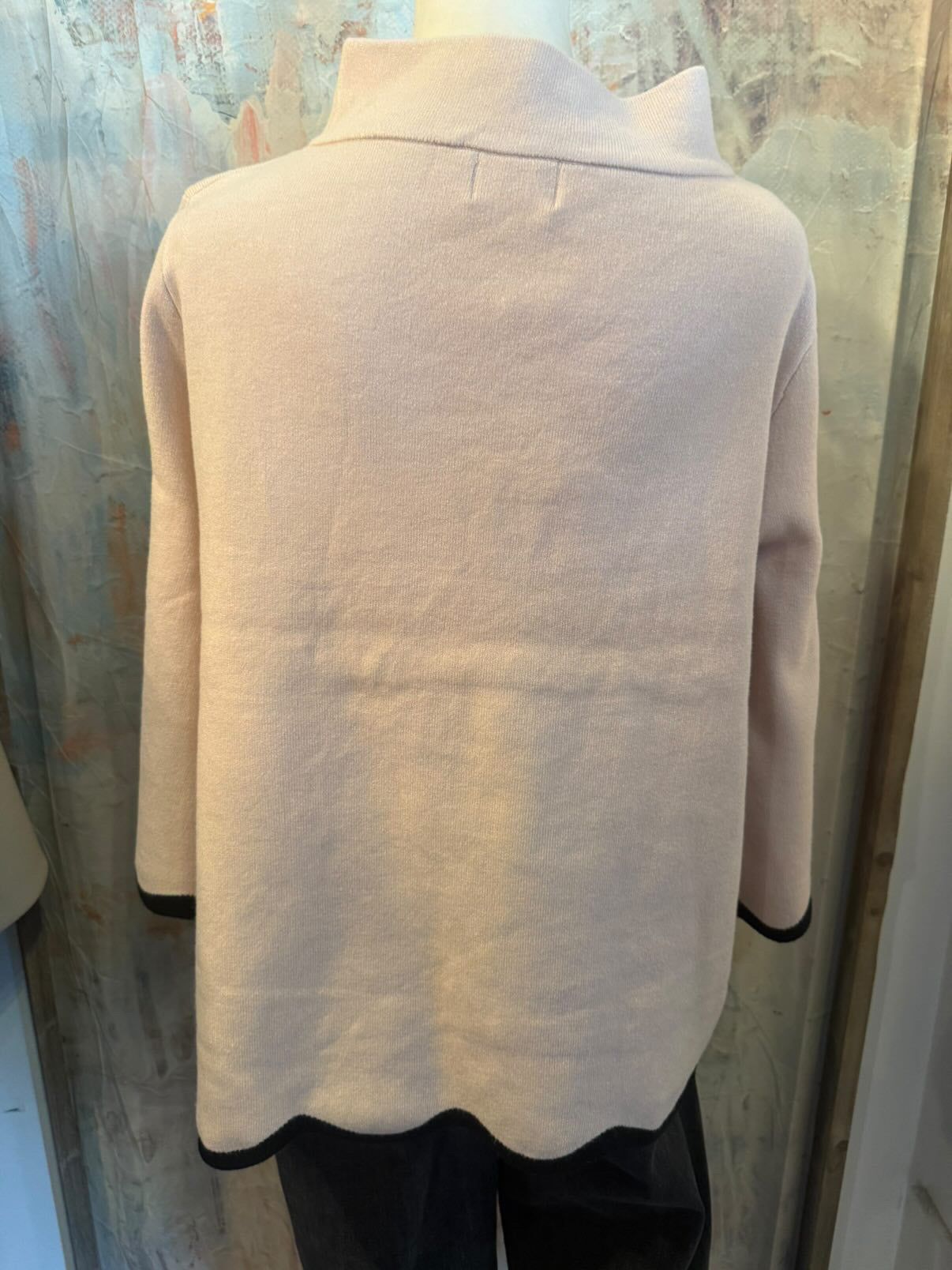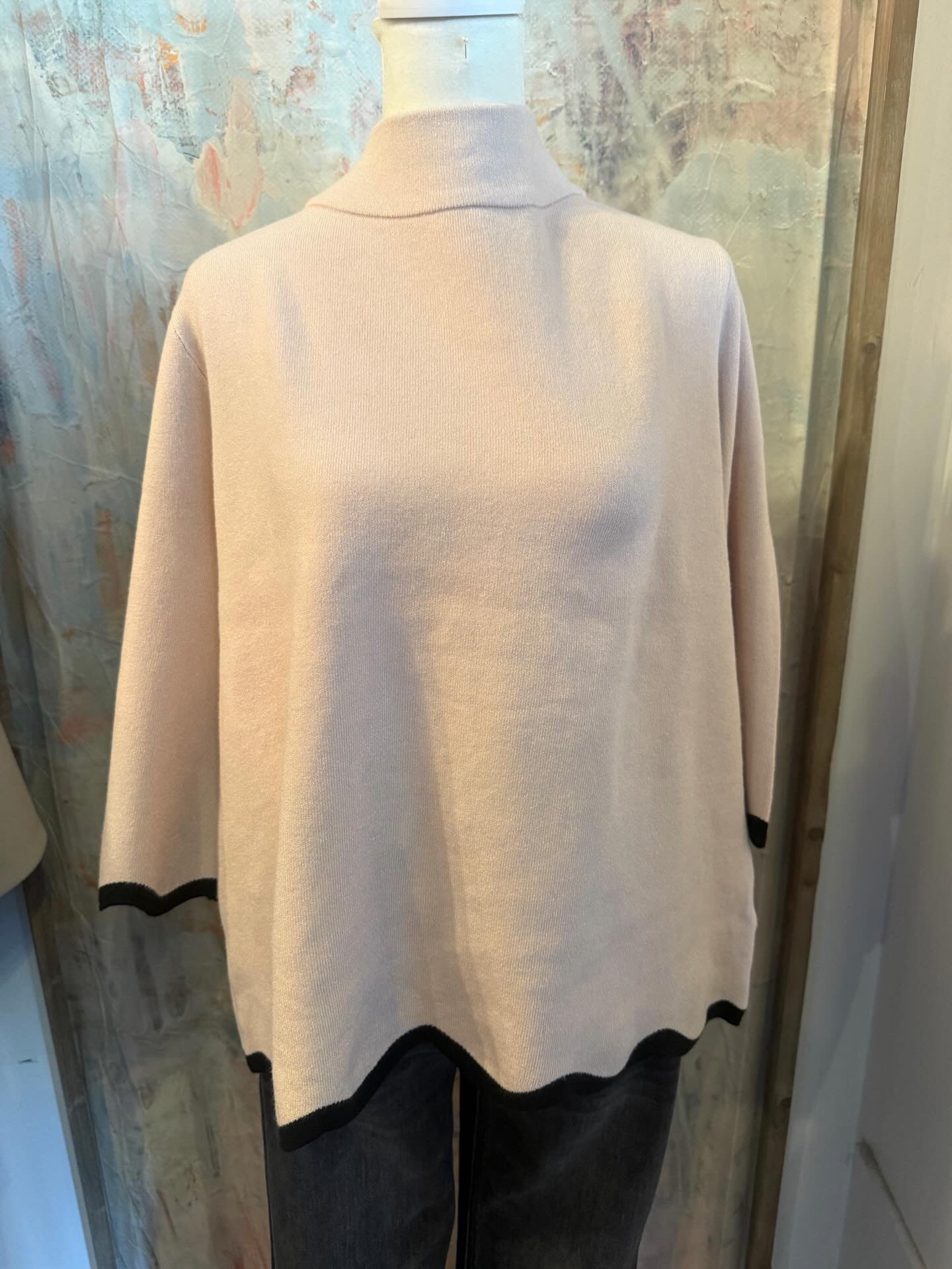 This versatile Scallop Edge Detail Mock Neck Sweater Top adds a touch of sophistication to any outfit. The scallop edge detail adds a delicate and feminine touch, while the mock neck provides a stylish and classic look. Made of soft and comfortable material, this top is perfect for any occasion.