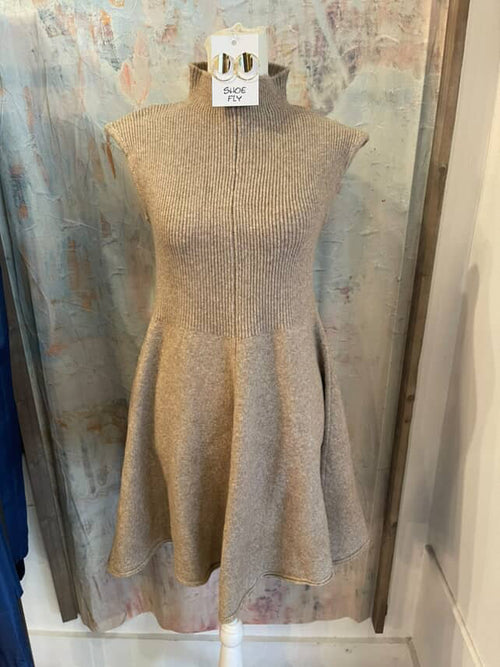 Sleeveless Navy Print Tie Waist Dress (small cutout at waist)