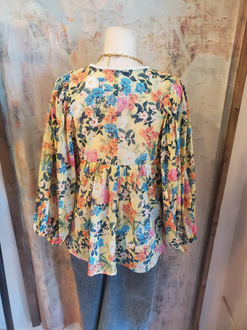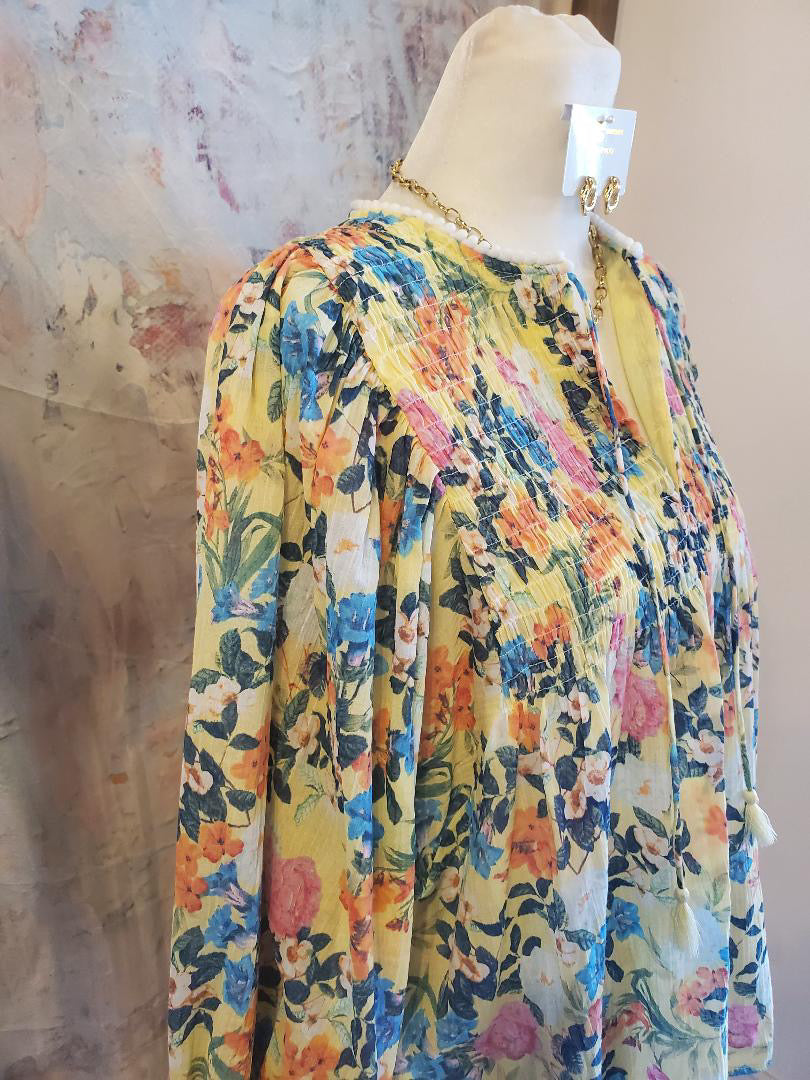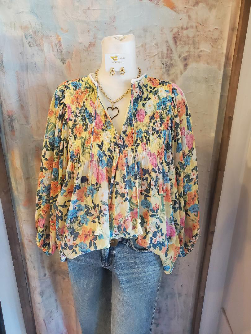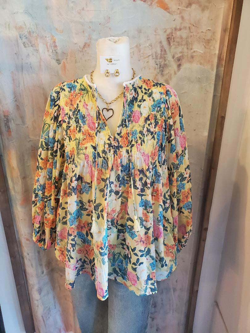 3/4 Floral Smock Detail Top