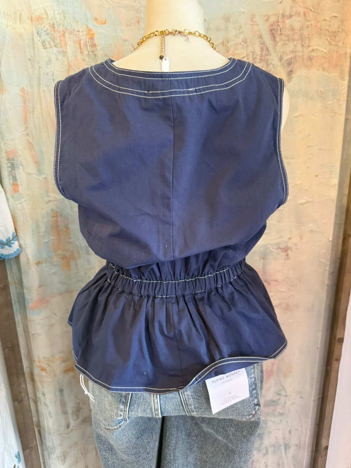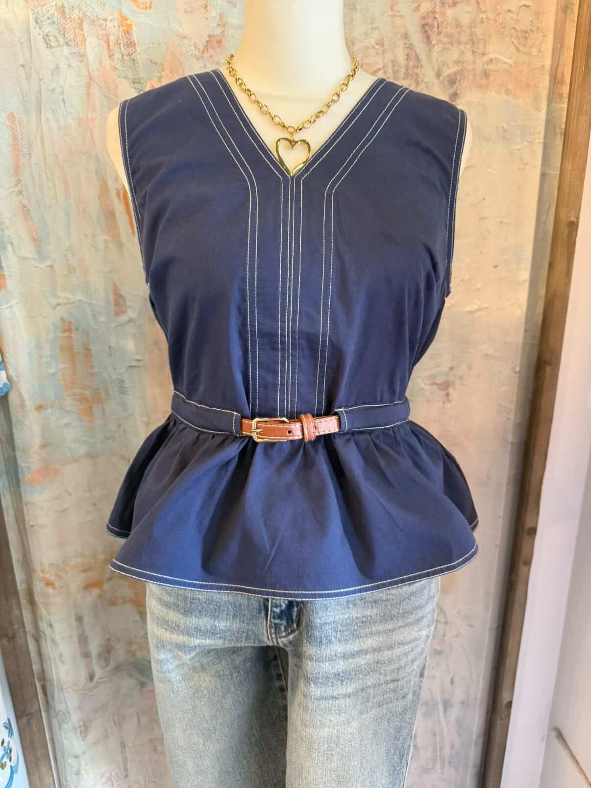 Belted Top with Contrast Stitching
