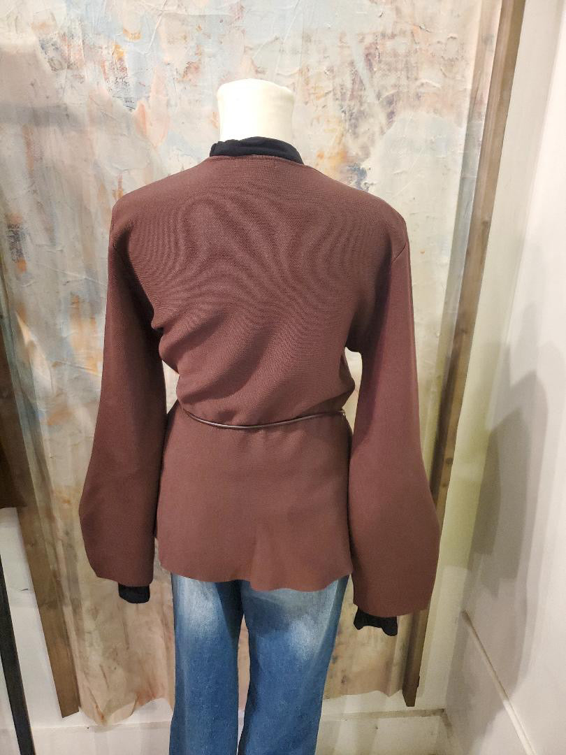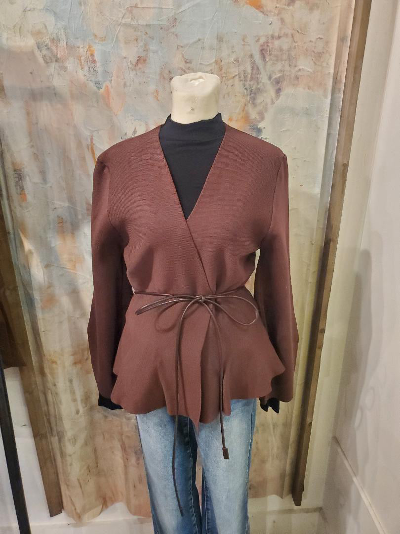 This belted v-neck cardigan features a luxurious faux leather belt, adding a touch of sophistication to any outfit. The belted design cinches at the waist, creating a flattering silhouette. Stay warm and stylish with this versatile cardigan.