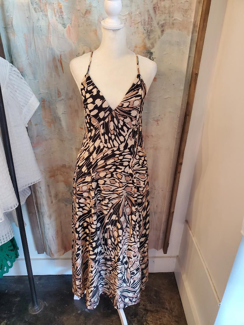 The Black Print Maxi Dress with Open Back combines elegant styling with practical design. The open back enhances breathability, making it suitable for warm weather. Its versatile black print allows for various styling options, catering to both casual and formal occasions, ensuring you maintain a sophisticated appearance.