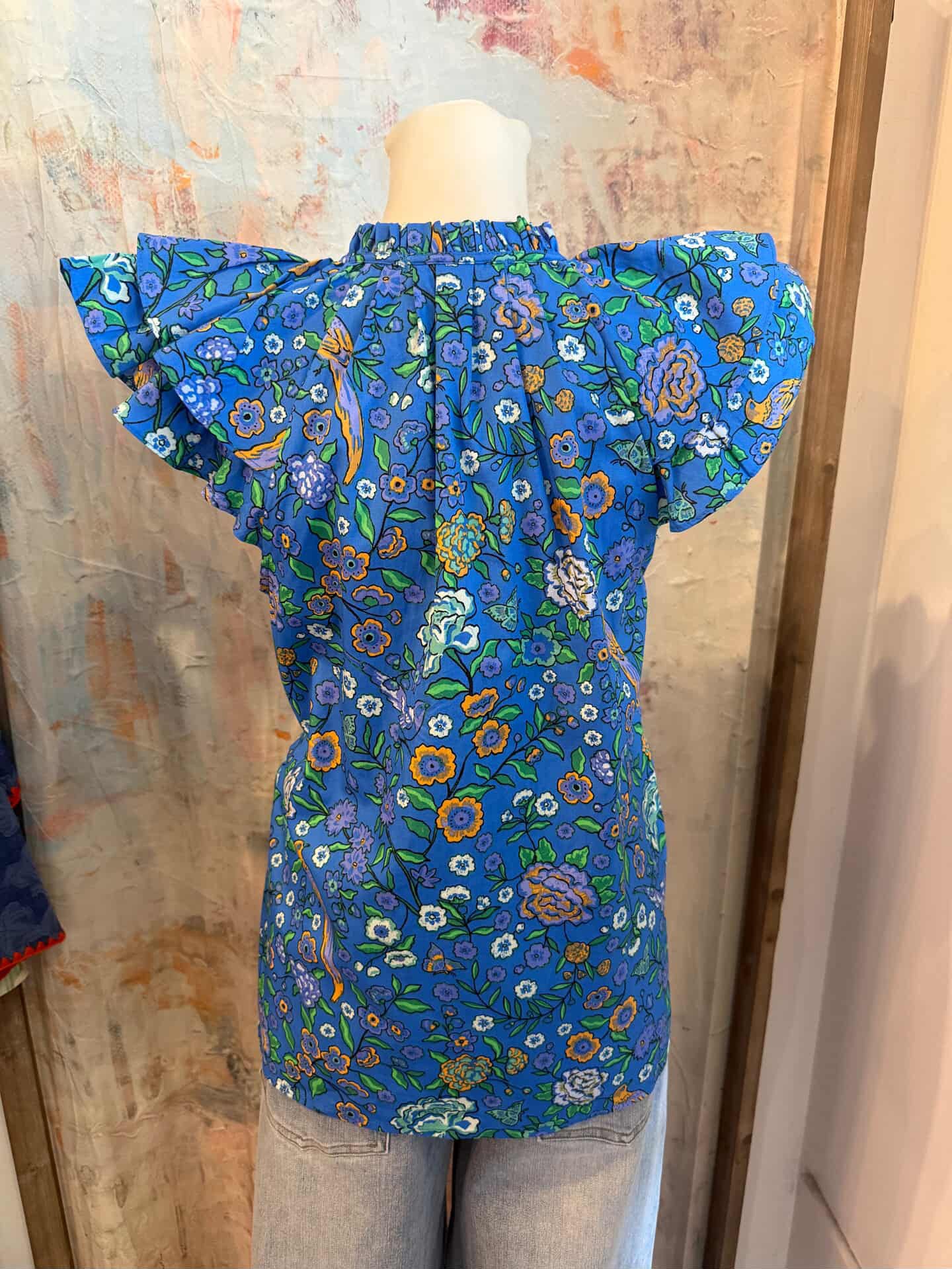 The Blue Green Flutter Sleeve Top is designed with flutter sleeves, enhancing arm mobility while providing a flattering silhouette. The blue-green color offers versatility, making it suitable for various occasions. This top allows for ease of movement, improving comfort during wear.