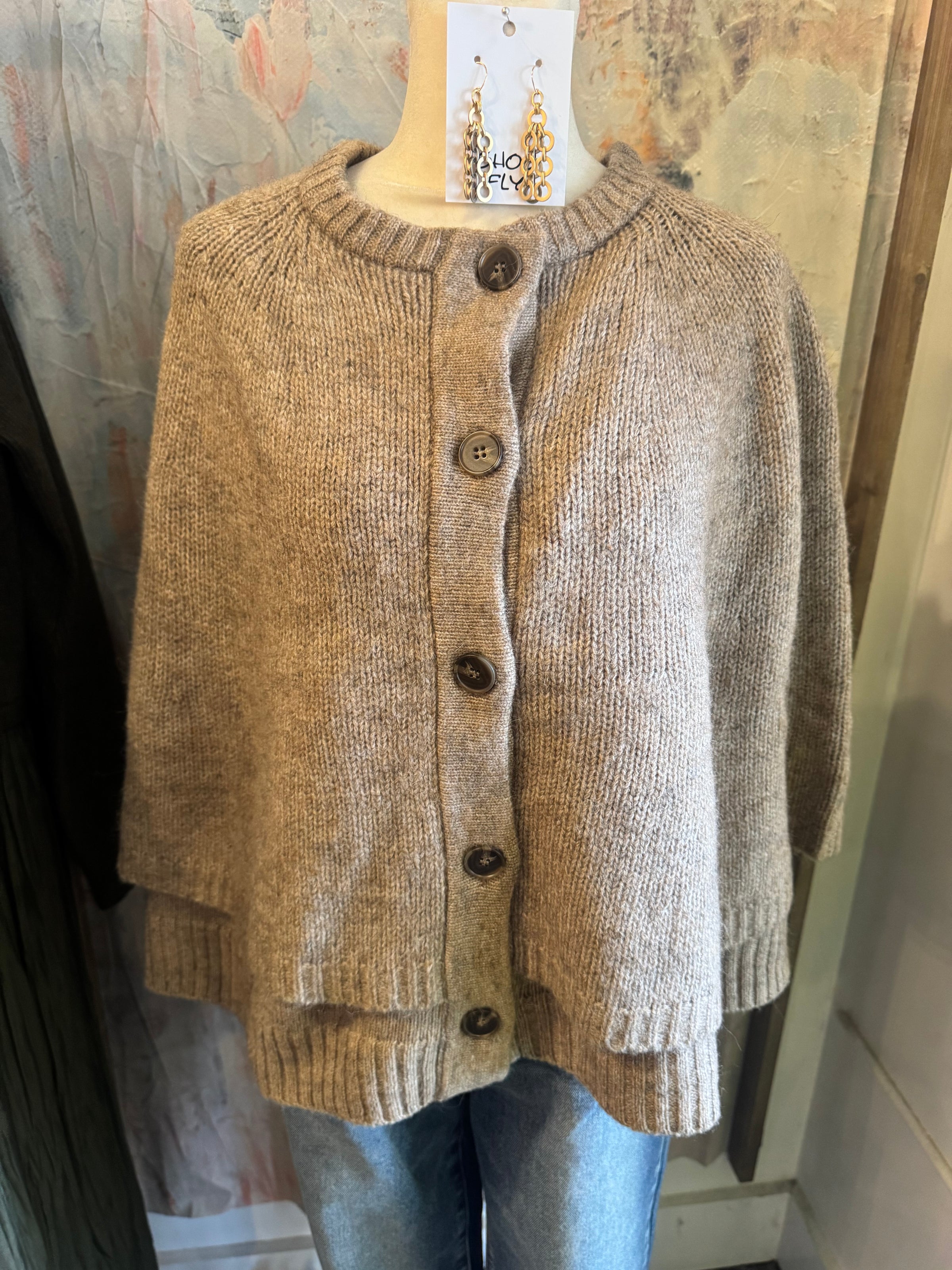 This Button Closure Cape Cardigan is expertly designed for both style and functionality. With its button-up feature, this cape sweater provides ease and convenience for putting on and taking off. Made with quality materials, it offers comfort and warmth while adding a fashionable touch to any outfit.