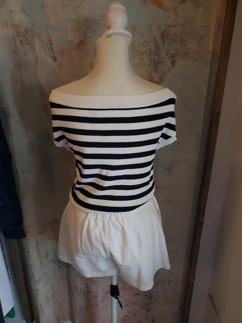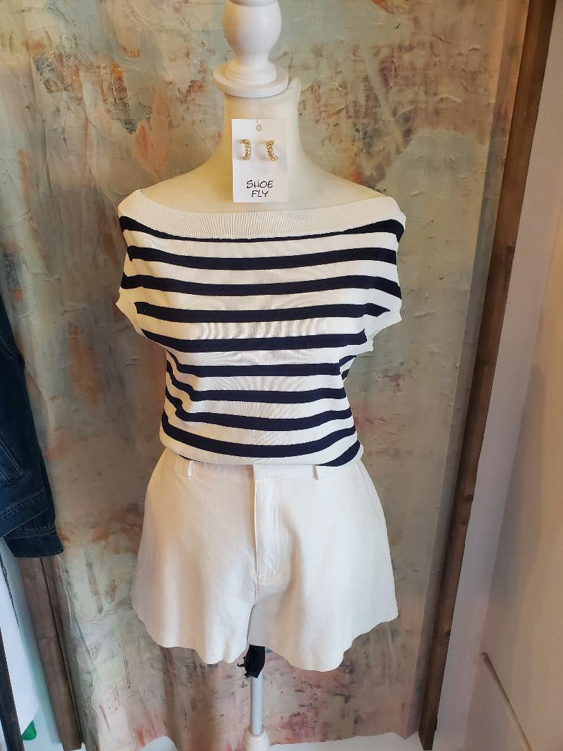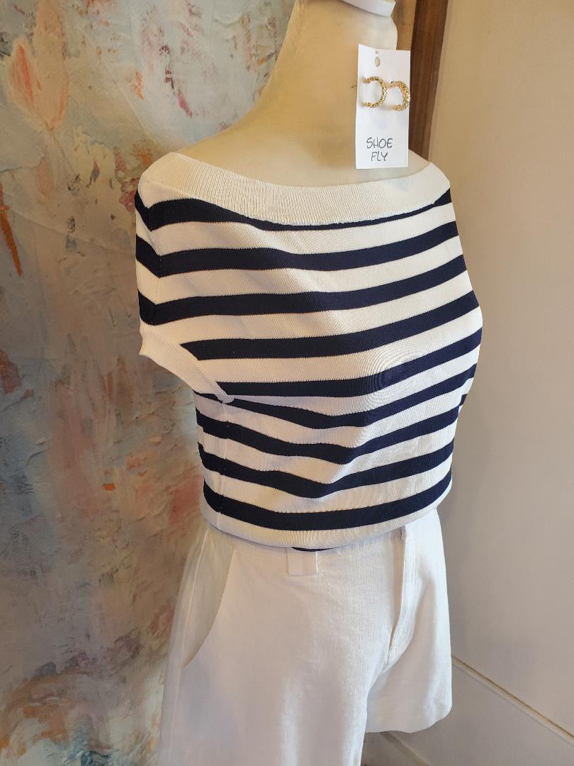 The Cap Sleeve Boat Neck Stripe Top combines elegance with functionality. The cap sleeve design provides moderate arm coverage, while the boat neck enhances neckline visibility. Stripes add a classic touch, making it suitable for various occasions. This top is crafted to ensure comfort and mobility, integrating style with practicality.