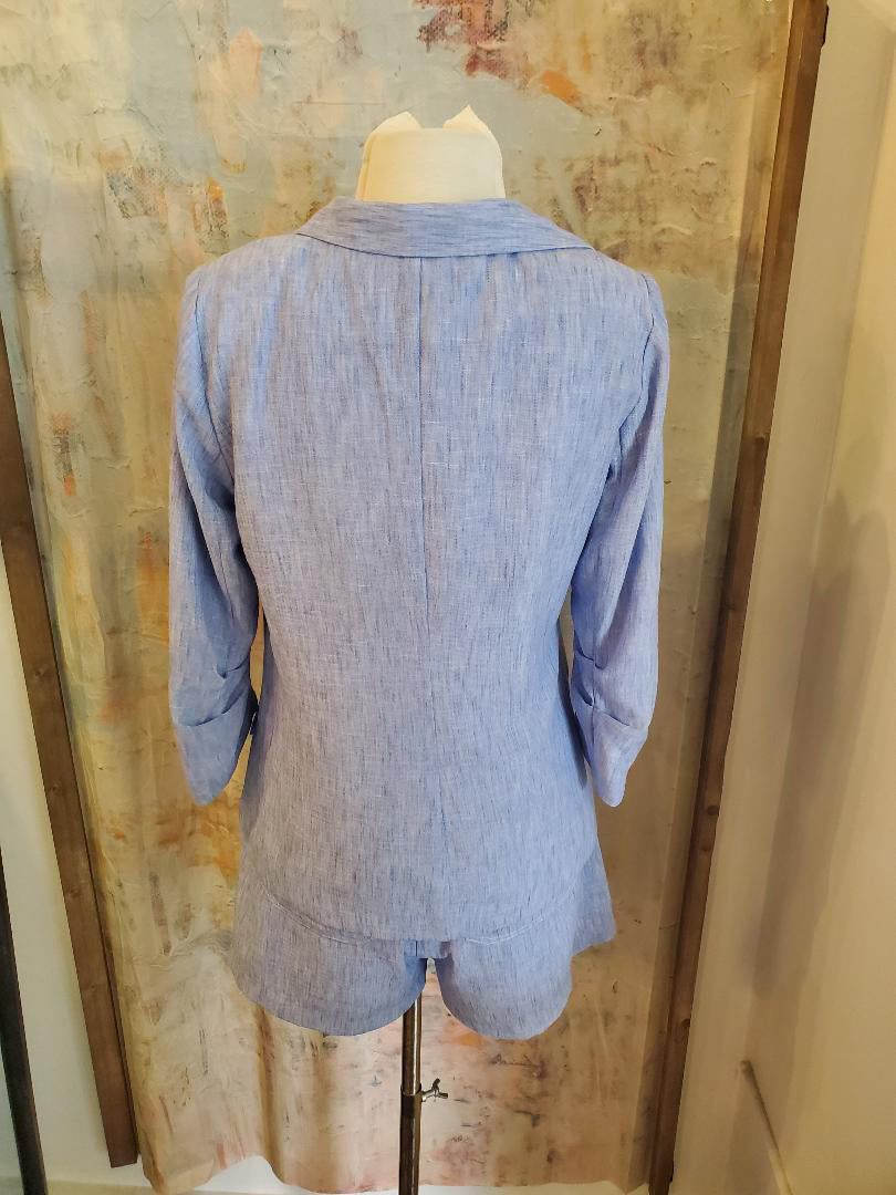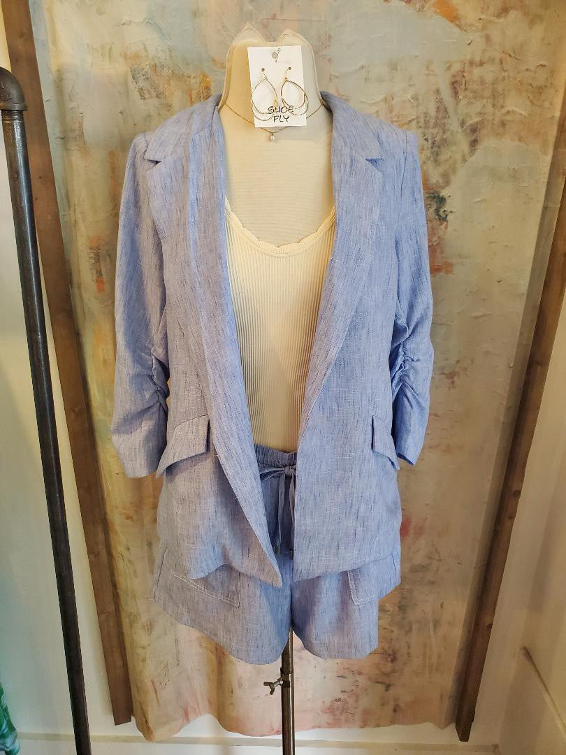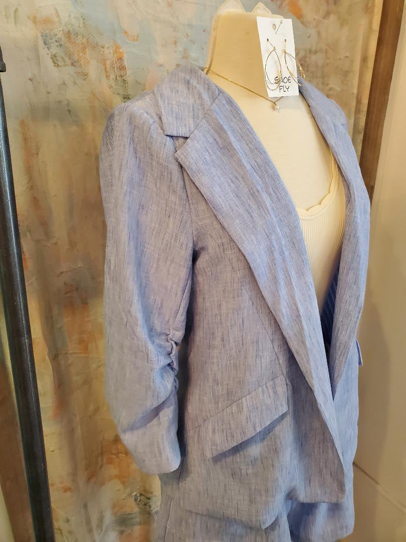 Chambray Ruched Sleeve Blazer