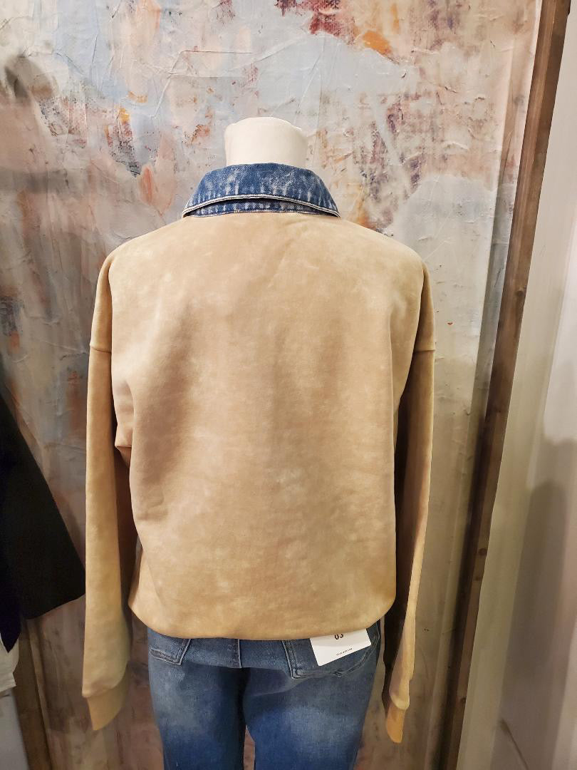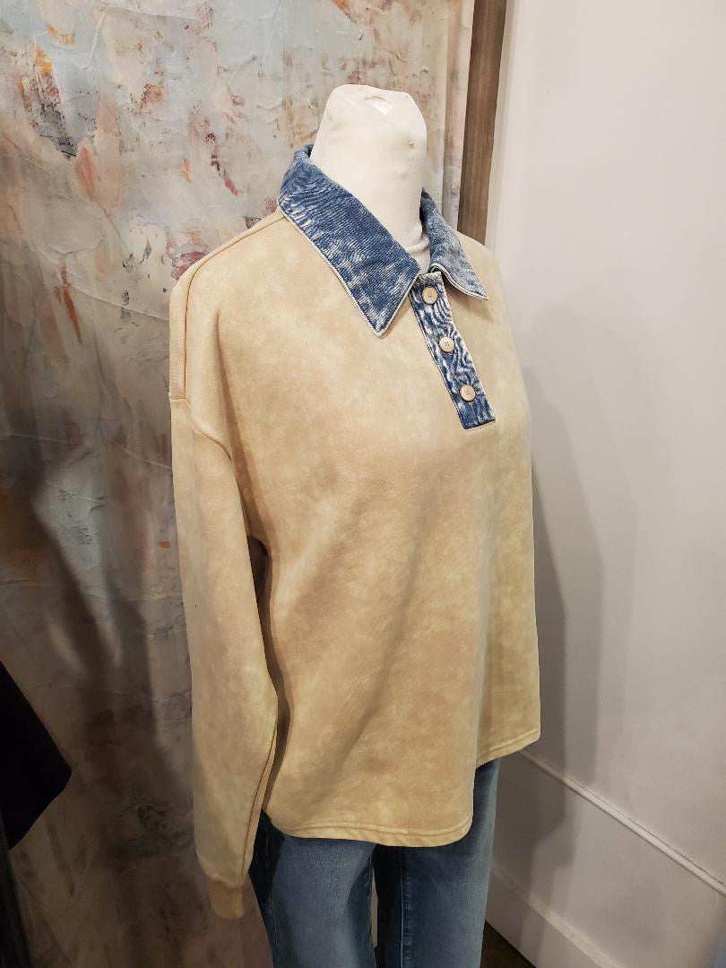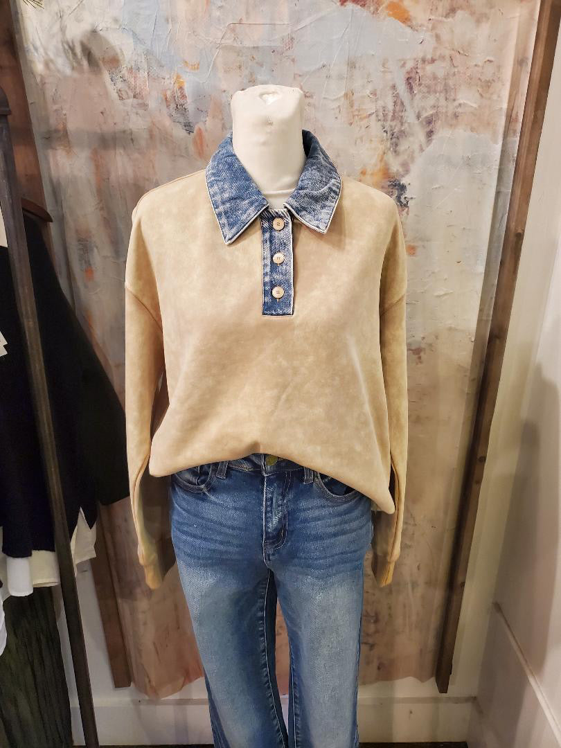 Denim Collar Washed Polo Shirt