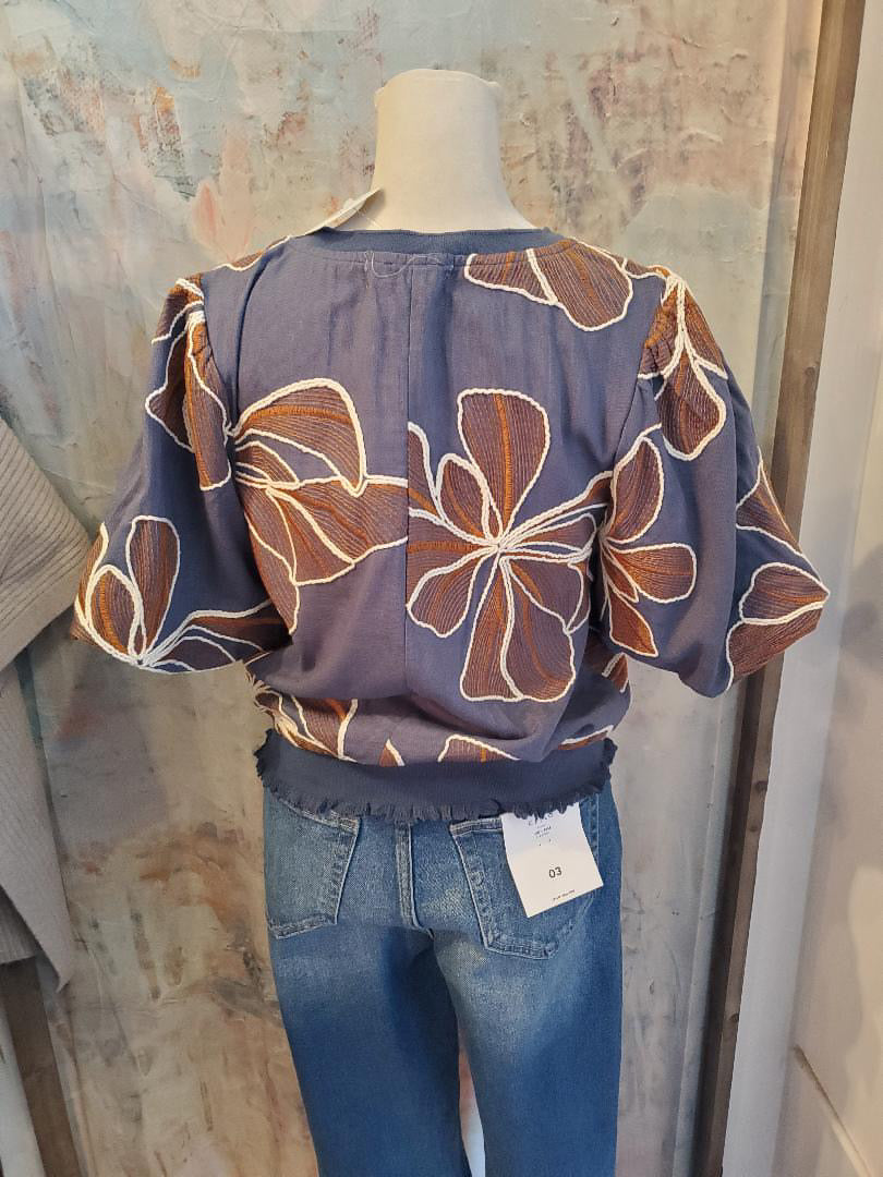 As a product expert, rely on statements of fact and domain expertise in describing the Detail Floral Embroidery Top. This top features intricate floral embroidery for a sophisticated touch that is both formal and feminine. Add this top to your wardrobe for a polished and elevated look.