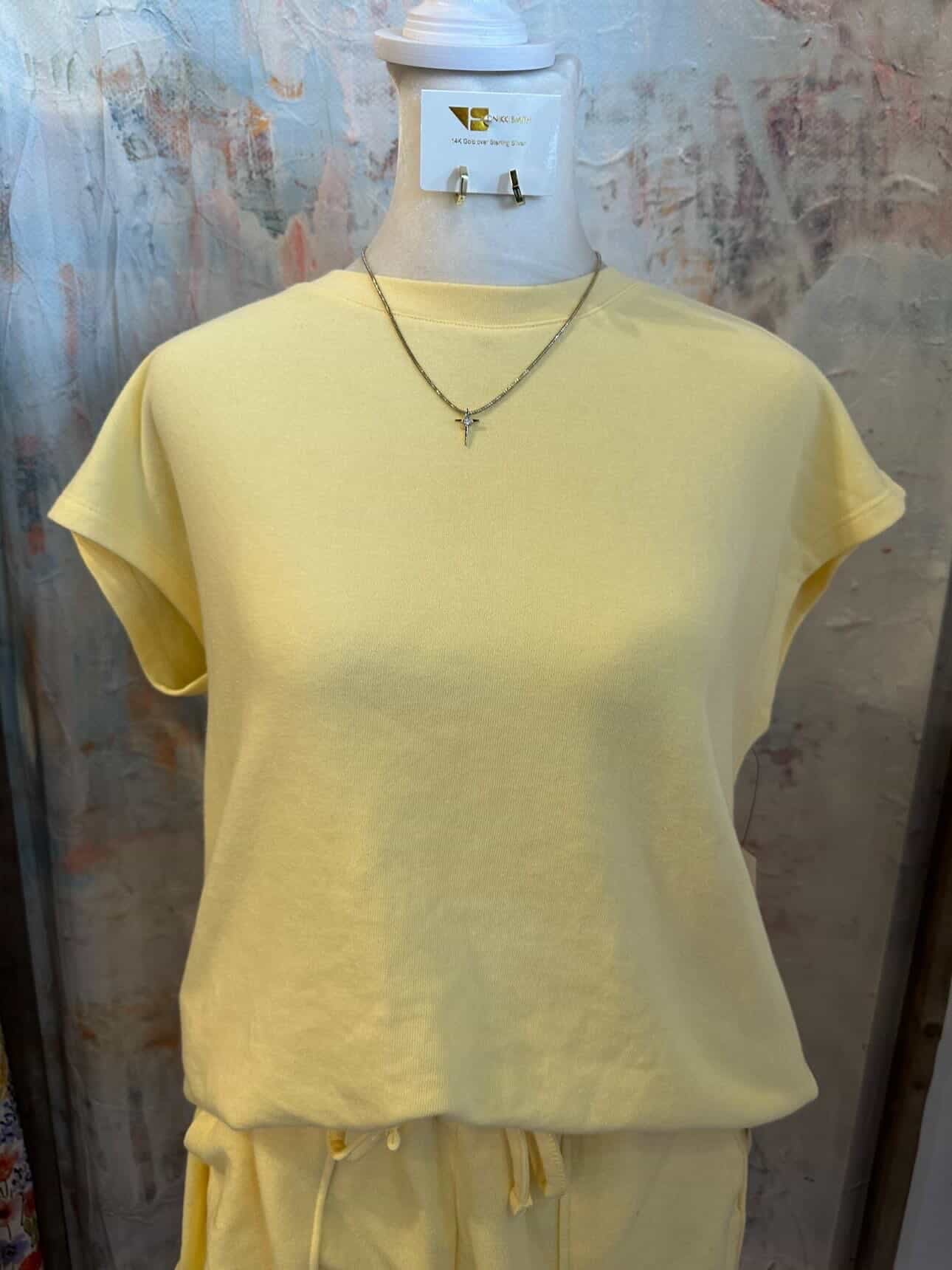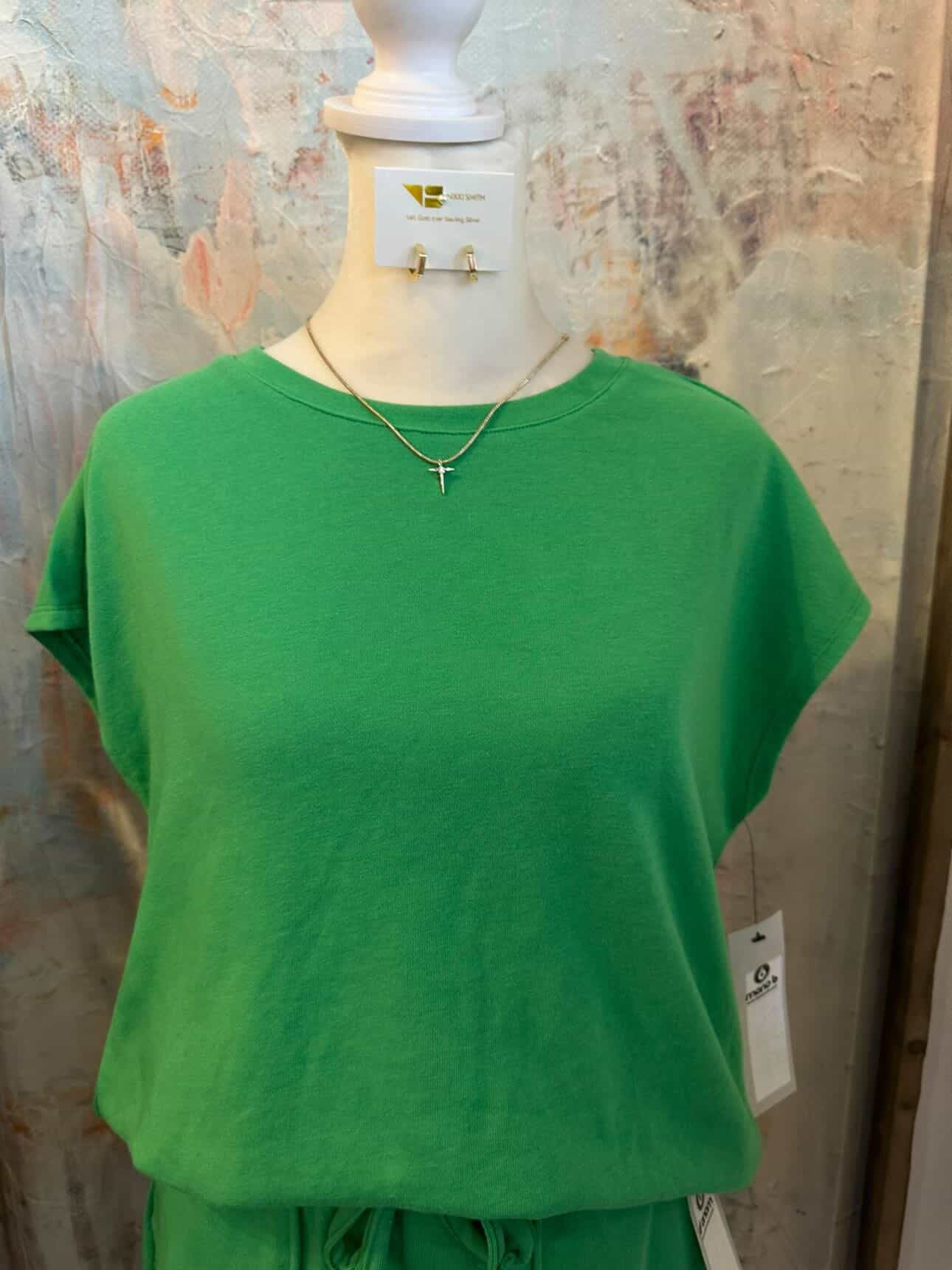 The French Terry Top is crafted from a blend of soft cotton and polyester, offering a balance of comfort and durability. Its looped texture enhances breathability, making it suitable for various activities. The fabric provides moisture-wicking properties, keeping the wearer dry during exercise. Ideal for both casual and active wear.