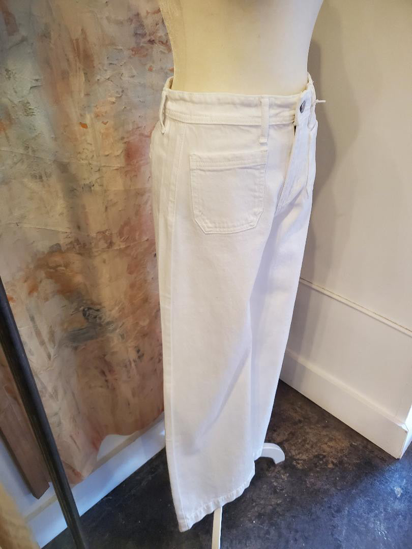 The Front Pocket White Wide Leg Denim is designed for functionality and style, featuring spacious front pockets for practical use. Its wide-leg cut enhances comfort and mobility, making it suitable for various body types. Crafted from durable denim, it offers longevity and resilience in everyday wear.