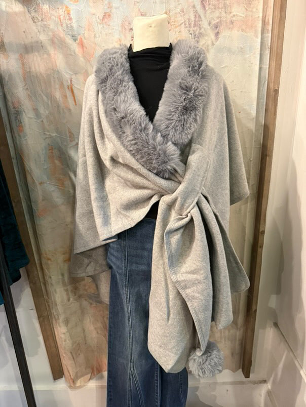 Fur Trim Cross Tuck Cape