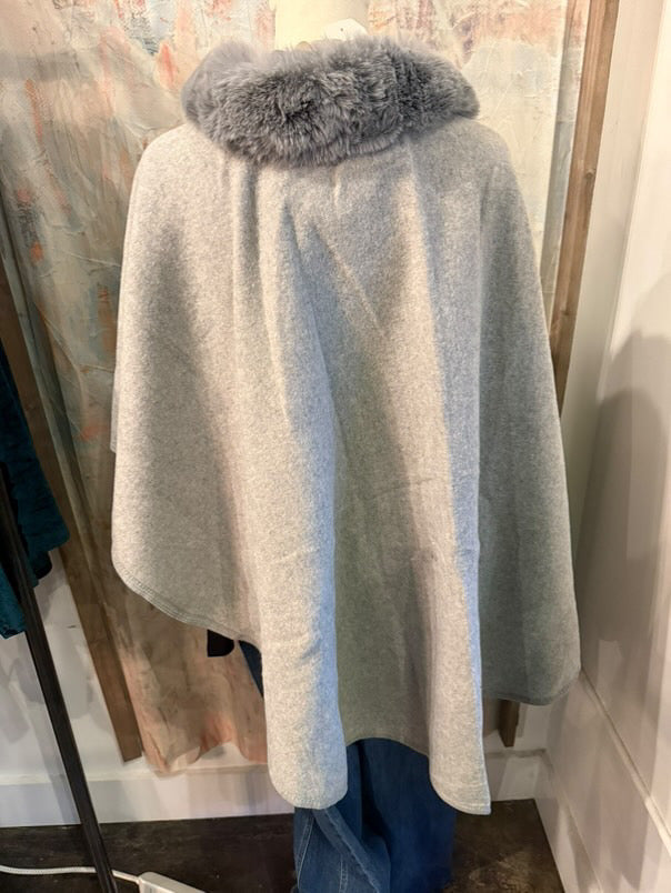 Introducing our Fur Trim Cross Tuck Cape, the perfect addition to your winter wardrobe. With its luxurious fur trim and unique cross tuck design, this cape will keep you warm and stylish all season long. Made with high-quality materials, it's sure to become a staple in your cold weather attire.