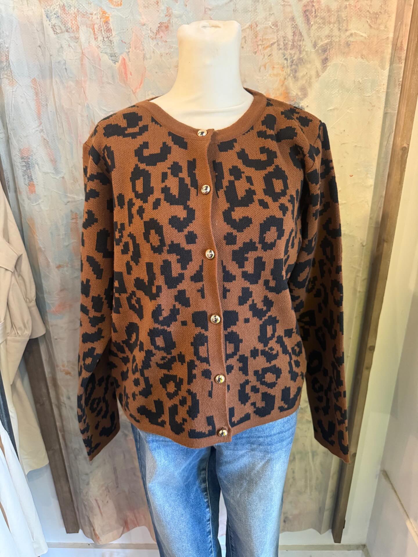 Expertly crafted from high-quality fabric, this Leopard Print Button Detail Top is a must-have addition to any fashion-forward wardrobe. Its leopard print design adds a wild touch to any outfit, while the button detailing provides a sophisticated touch. Elegant and versatile, this top is perfect for any occasion.