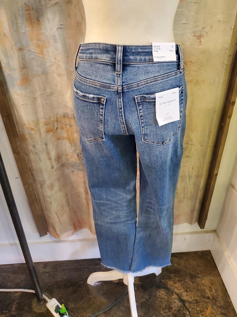 Expertly designed for both comfort and style, these Mid Rise Crop Straight Denim Jeans are a must-have addition to any wardrobe. Featuring a mid-rise fit and a cropped straight leg, these jeans offer a flattering silhouette that can easily be dressed up or down. Made with high-quality denim, they provide both durability and flexibility for all-day wear. Elevate your denim game with these versatile and timeless jeans.