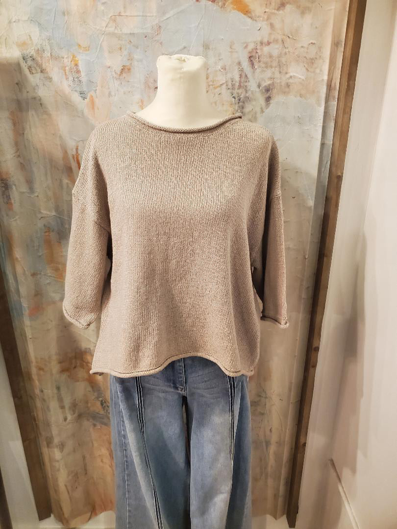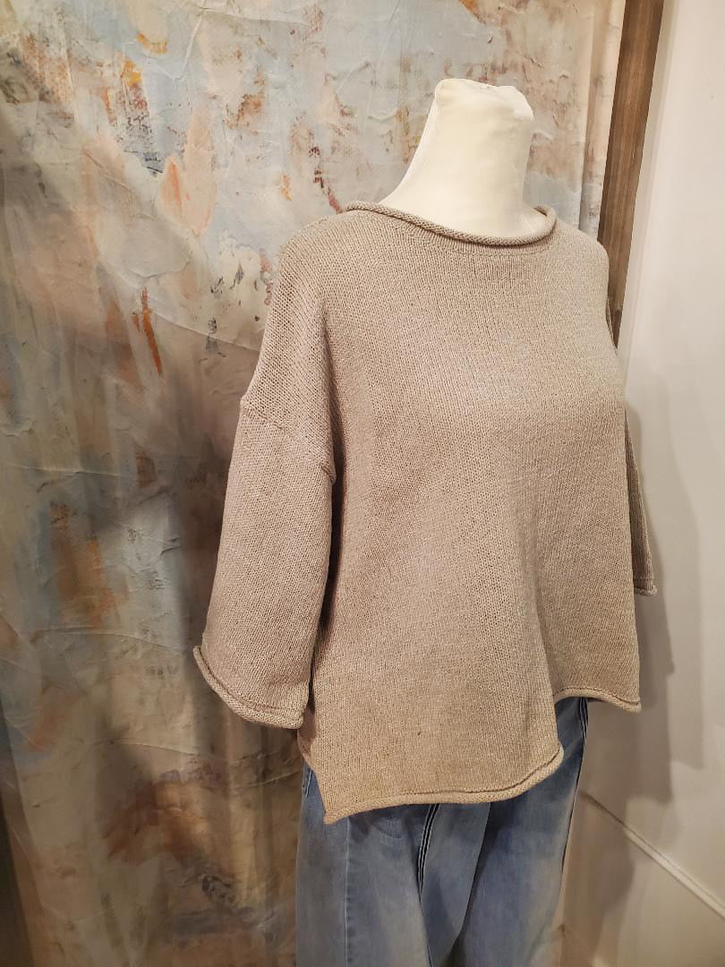 The Rolled Edge Loose Fit Sweater Top features a relaxed silhouette and rolled edge detailing, offering comfort and understated style. This design allows for ease of movement, making it suitable for various casual settings. The loose fit provides breathability, enhancing overall wearability throughout different climates.
