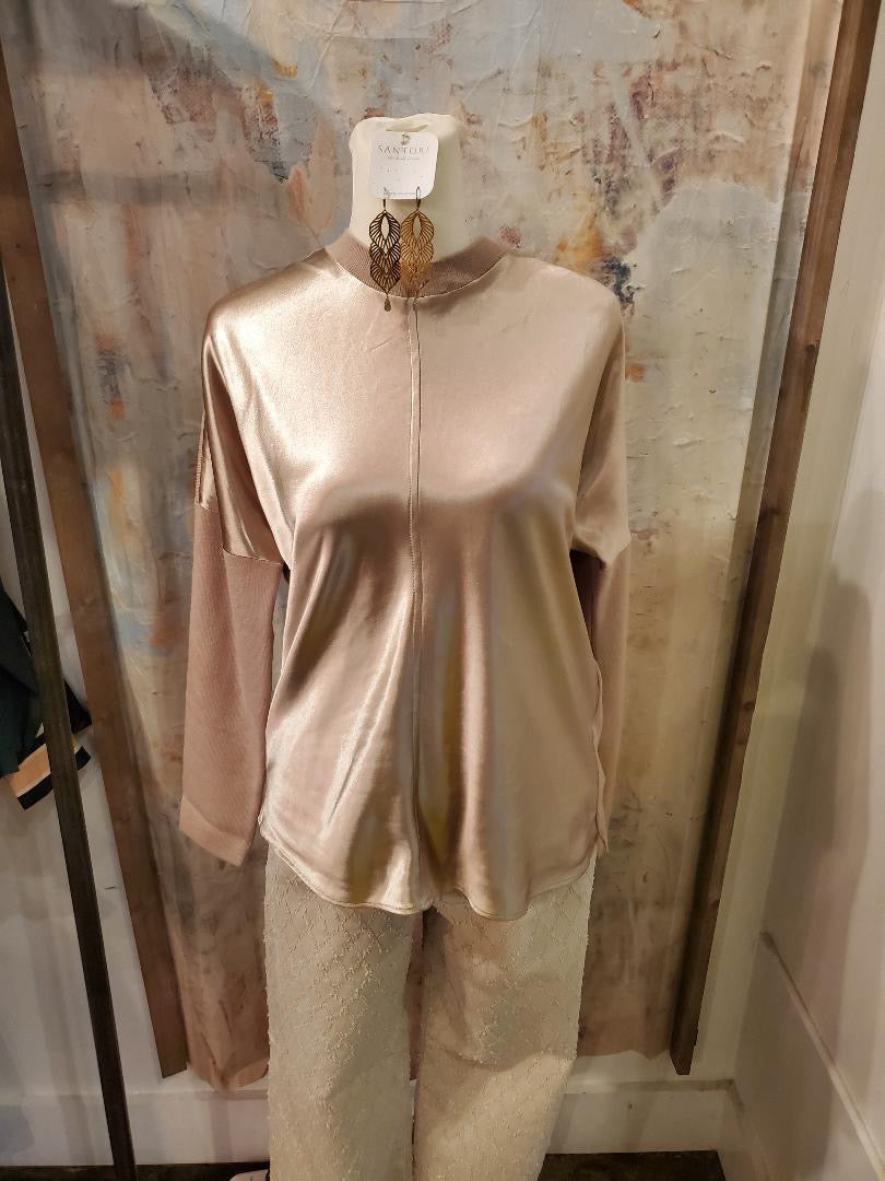 Crafted from a luxurious satin knit mixture, this top offers a touch of elegance and comfort. The smooth and soft fabric glides over your skin, providing a flattering fit. Perfect for any occasion, this versatile top can be dressed up or down for effortless style.