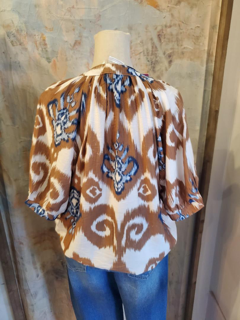 Short Sleeve Print V Neck Top