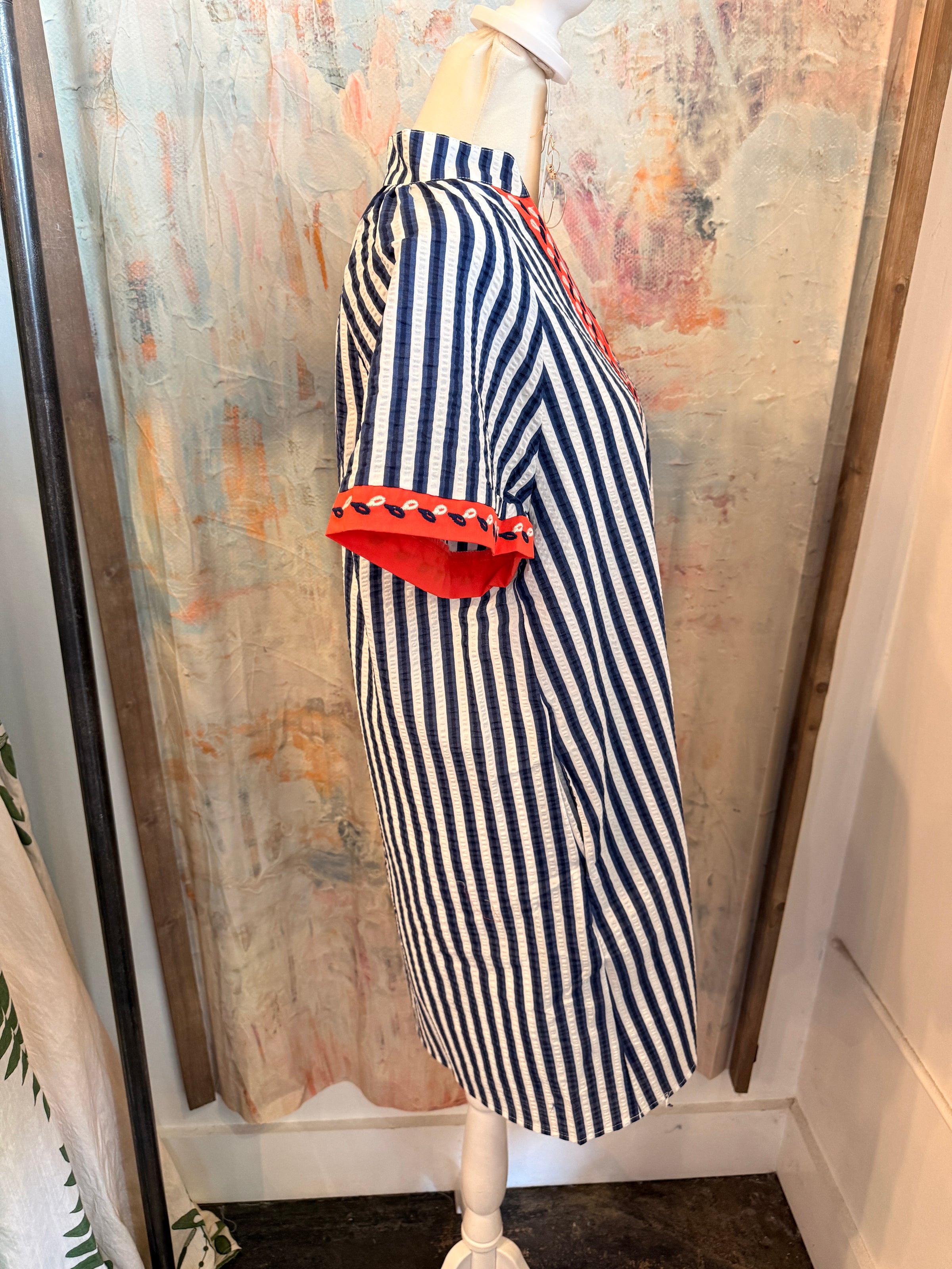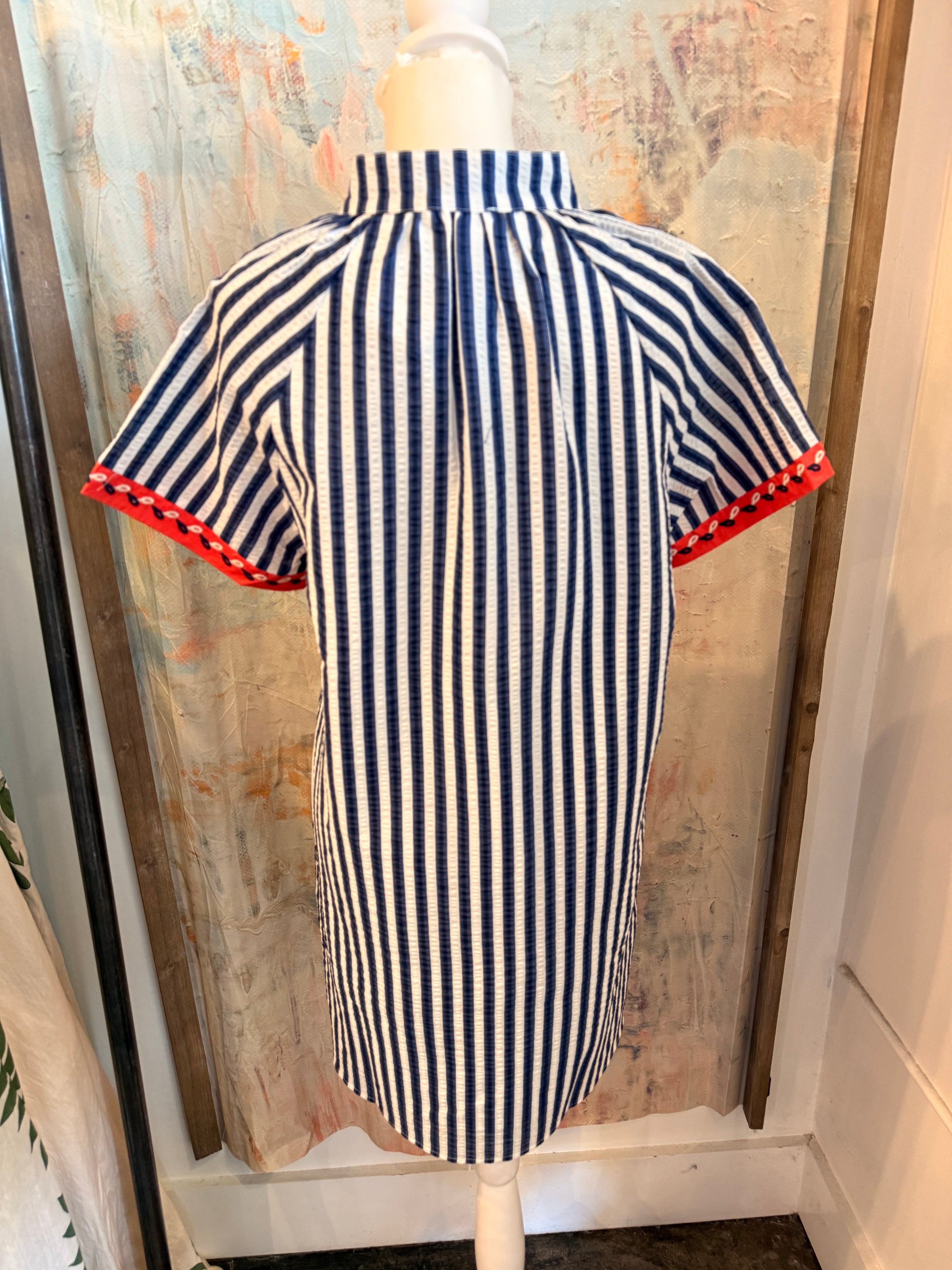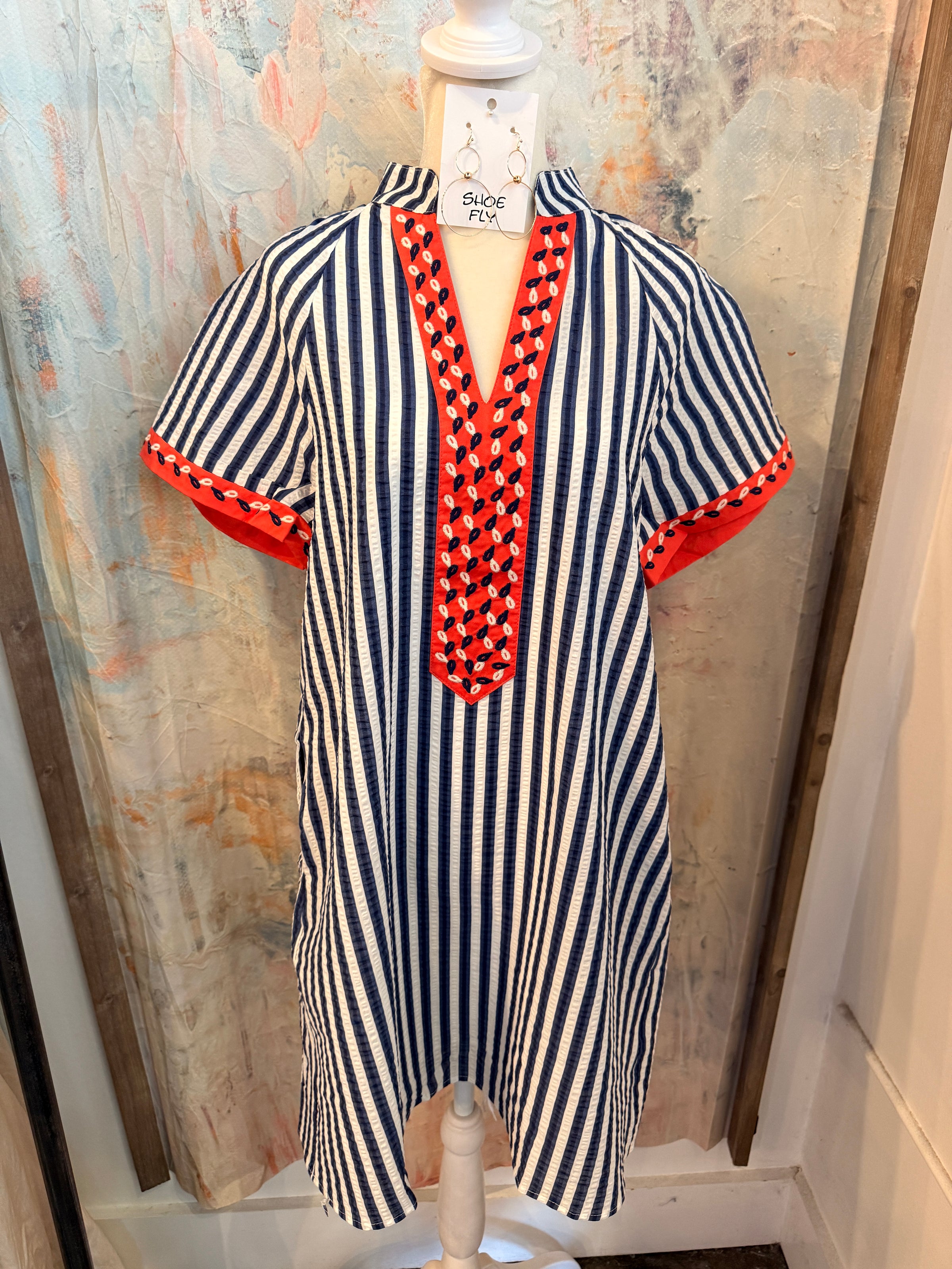 The Short Sleeve Stripe Detail V Neck Dress features a navy stripe design that offers a visually appealing contrast. Its short sleeves provide a moderate level of coverage, making it suitable for various occasions. This dress combines style with comfort, ensuring a versatile addition to any wardrobe.