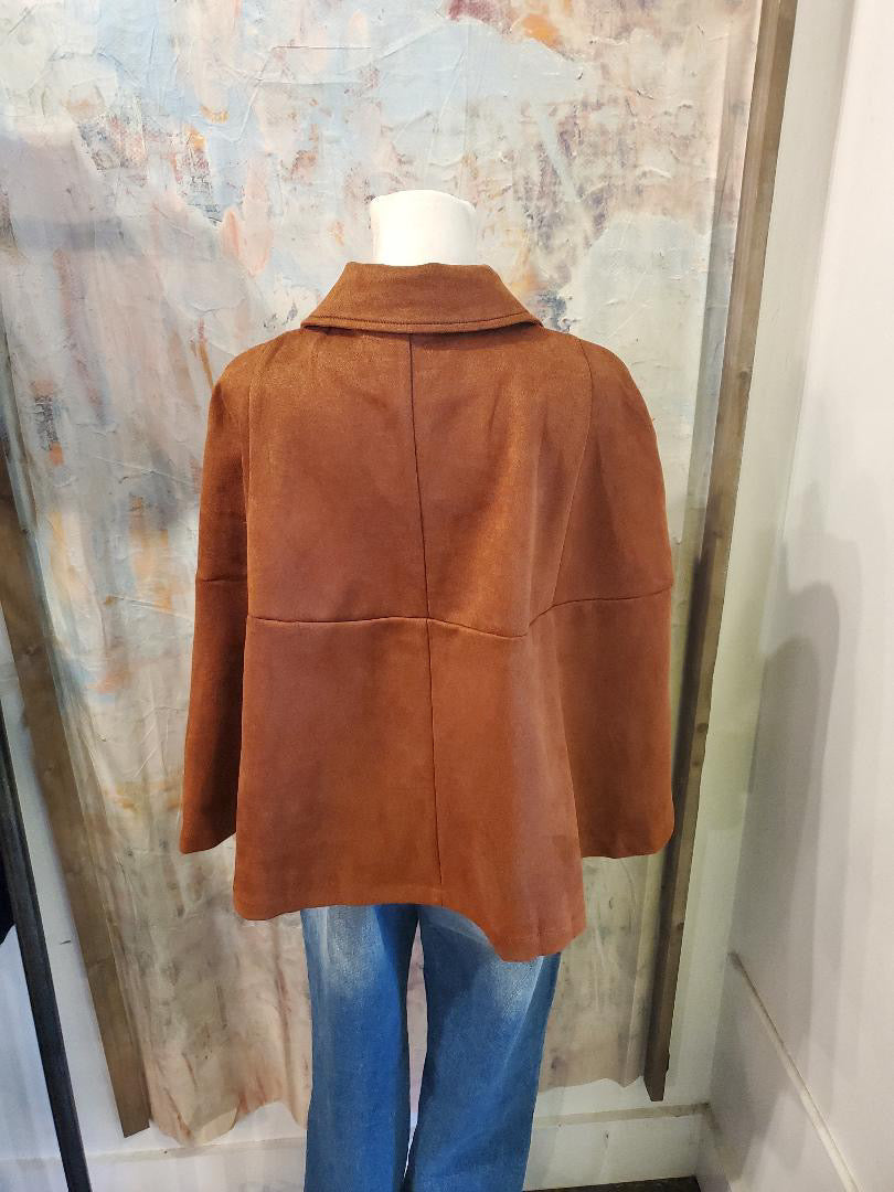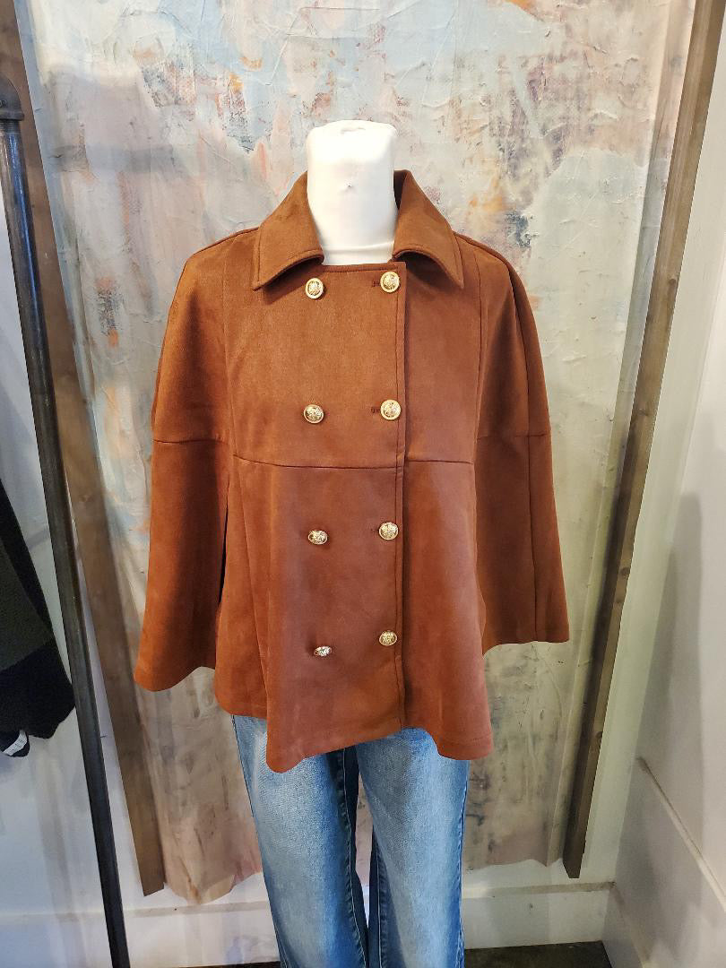 Harness the timeless elegance of our Solid Double Breasted Suede Cape Jacket. Crafted from high-quality suede, this jacket's double-breasted design exudes sophistication while providing warmth and comfort. Elevate your style with this versatile piece, perfect for any occasion.